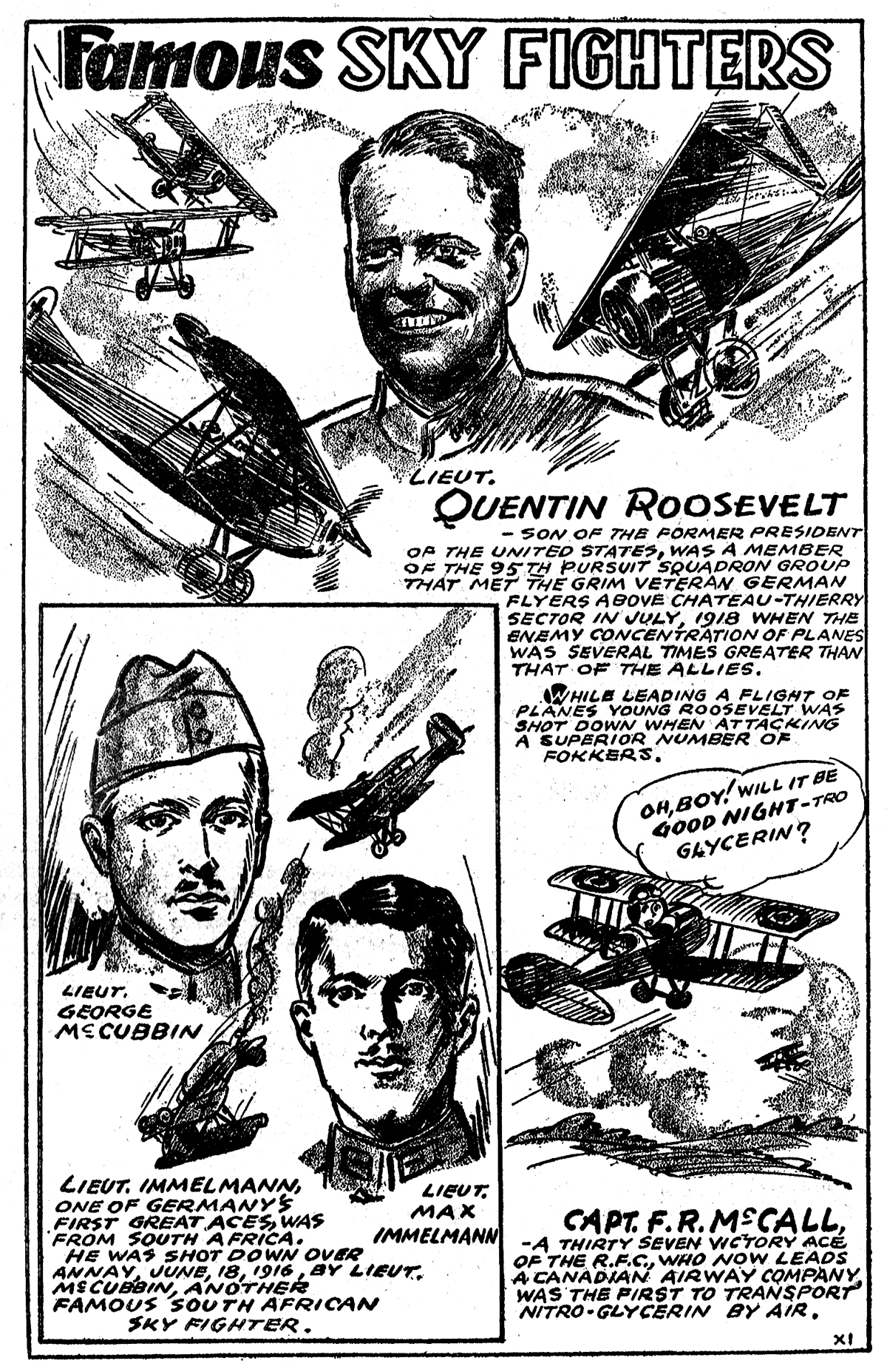 The August 1934 installment, from the pages of Sky Fighters, Features Lt. Quentin Roosevelt and Capt. Albert Heurteaux!