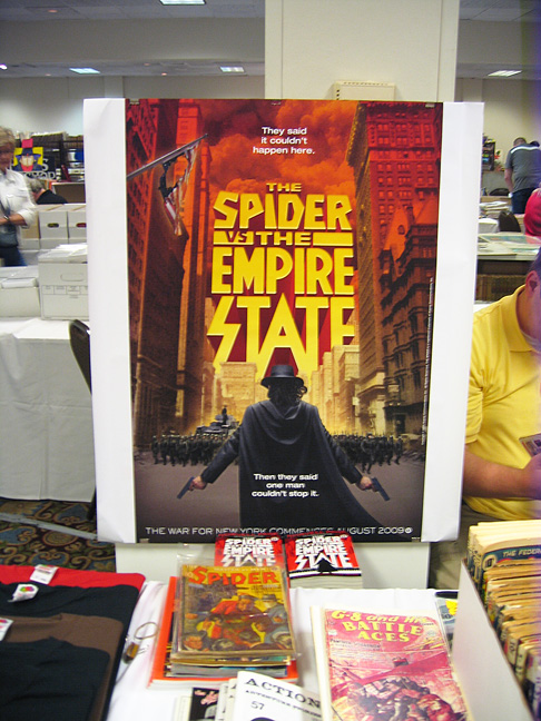 We sold our first copy of The Spider Vs. The Empire State during dealer setup on Thursday night, and this proved to be a good omen for sales. As I posted previously, we SOLD OUT of the title on Friday and could only take orders for it on Saturday and Sunday! (We also sent people to its Amazon listing, natch.) Some of these customers were not even Spider fans (initially), but had been drawn to our table by the Empire State flyers we had put outside the dealers’ room, or the large “movie poster” of the ad image behind our table. That was exciting.