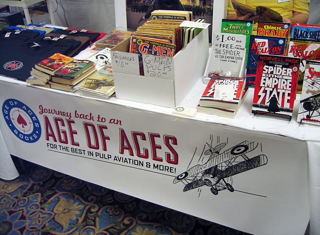 The Age of Aces team had a blast at PulpFest 2009 this past weekend! This was our first time at a pulp gathering as official dealers, and though it mostly tied us to our table I think it was actually more fun because it gave us the opportunity to interact with so many pulp fans and curious people from Columbus. This was also a rare chance to hang out with some of the contributors to our books, like Scott Cranford, Don Hutchison, Sid Bradd and Thomas Krabacher.