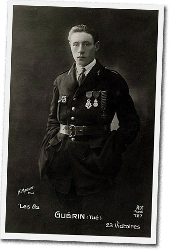 Sous Lieutenant Gabriel Fernand Charles Guerin was credited with 23 confirmed victories—including five of which he shared—and a reported 10 more unconfirmed. Most of these victories were while a pilot in SPA 15. As we said he was France’s ninth ranking Ace in the First World War and was awarded the Legion d’honneur, Médaille Millitaire and the Croix de Guerre with 15 palms and two bronze stars!
