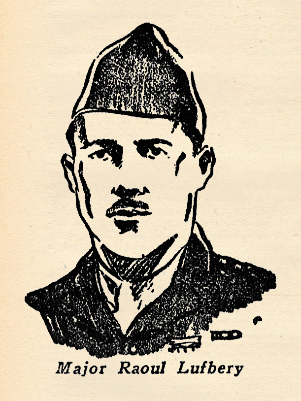 already famous when America entered the War. For some time he was the mechanic of Marc Pourpe, famous French flyer. Pourpe was killed in aerial combat. Lufbery who was with the Foreign Legion, asked to take his place in order to avenge his death. The French army, defying usual procedure sent him to join Escadrille de Bombardmente V. 102, where he made a distinguished record.