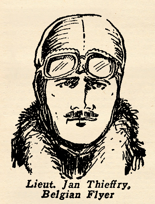 a part in the war of the air as she did in the war on the ground, when her brave soldiers held up the advance of the German hordes at the gates of Liege until the British and French armies could mobilize and get to the front to begin their counter-offensive. Corporal Jan Thieffry was a motorcycle despatch rider at that time. He was taken prisoner by a flying squadron of German Uhlans, but after some months made his escape.