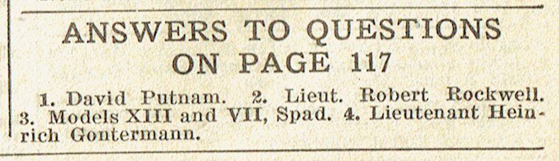 FREQUENT visitors to this site know that we’ve been featuring Terry Gilkison’s Famous Sky Fighters feature from the pages of Sky Fighters. Gilkison had a number of these features in various pulp magazines—Clues, Thrilling Adventures, Texas Rangers, Thrilling Mystery, Thrilling Western, and Popular Western. Starting in the February 1936 issue of Lone Eagle, Gilkison started the war-air quiz feature Sky Writers. Each month there would be four questions based on the Aces and events of The Great War. If you’ve been following his Famous Sky Fighters, these questions should be a snap!