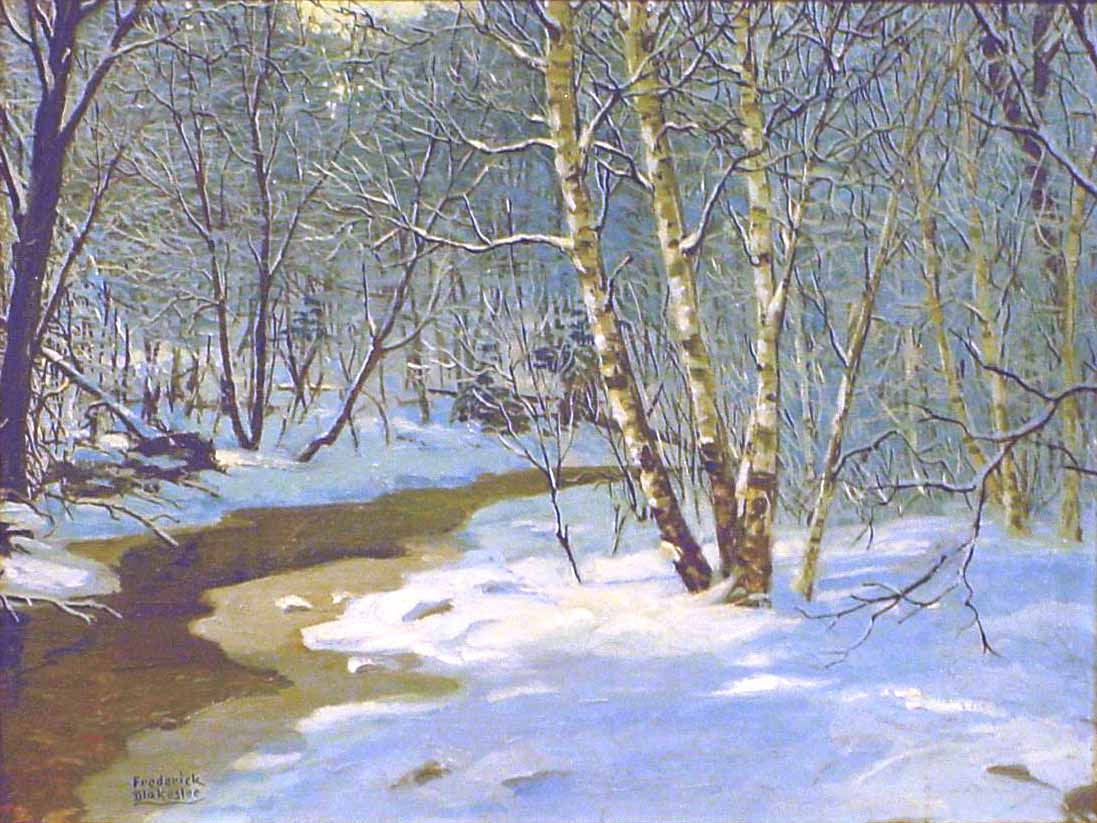 Blakeslee’s retirement years were spent in a relaxed country village, where he was free to drive around the White Mountain National Forest with his folding French easel and paint the traditional Americana landscapes that occupied his creative energies during the final decade of his life. On March 5th, 1973, Frederick Manley Blakeslee died of a heart attack at age 74.