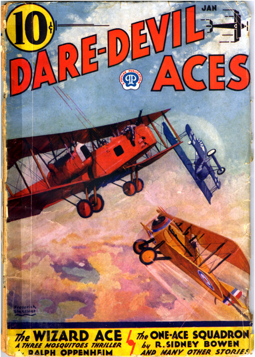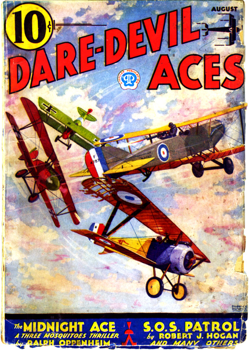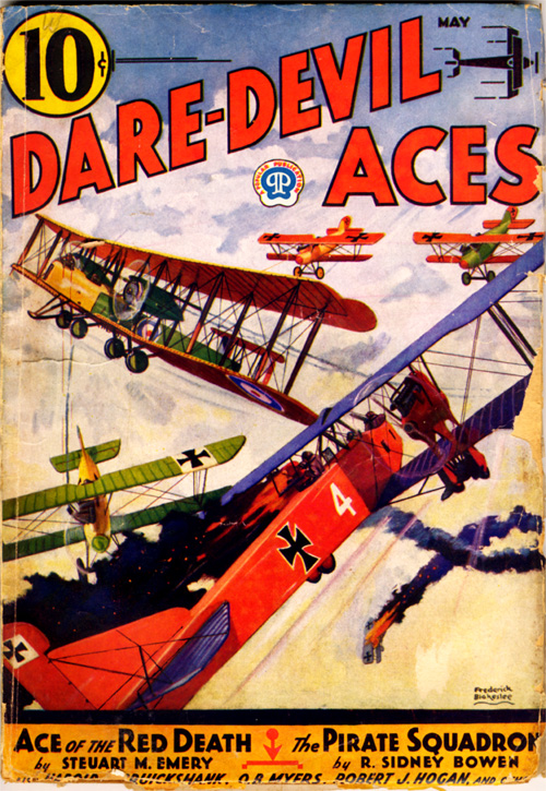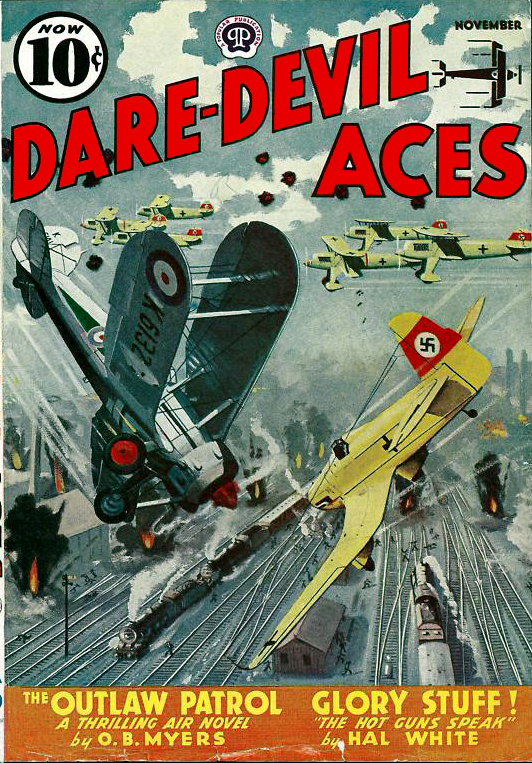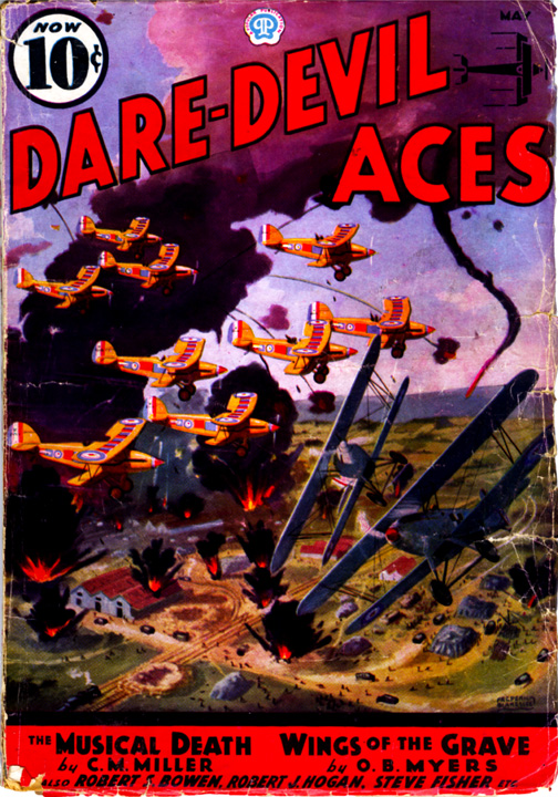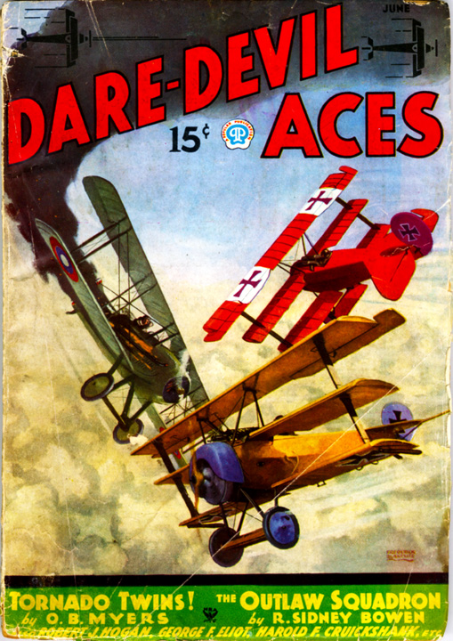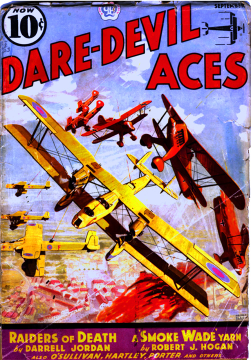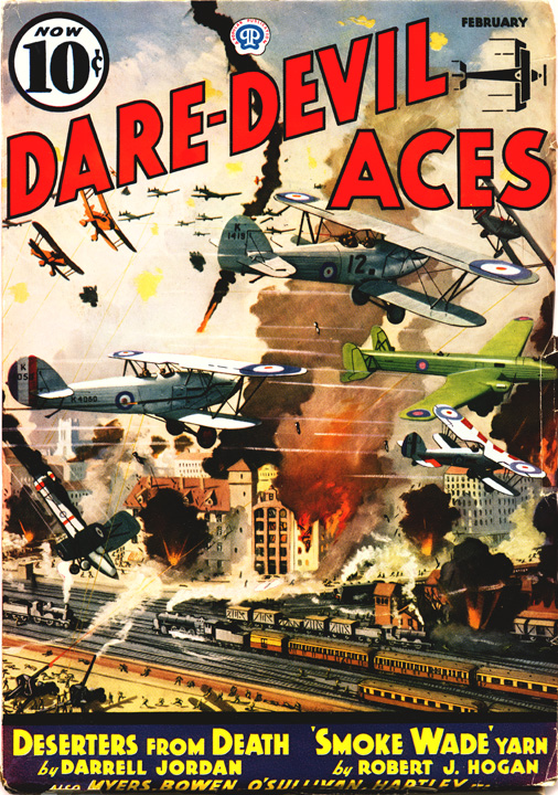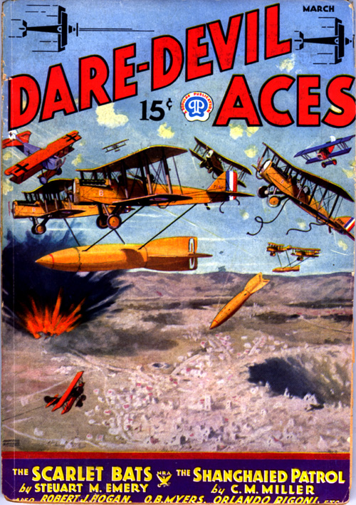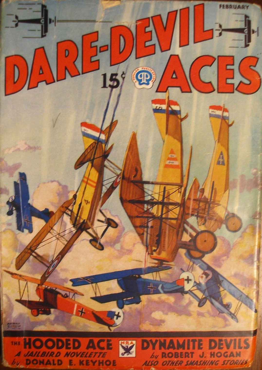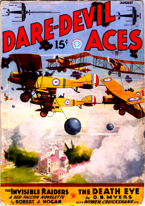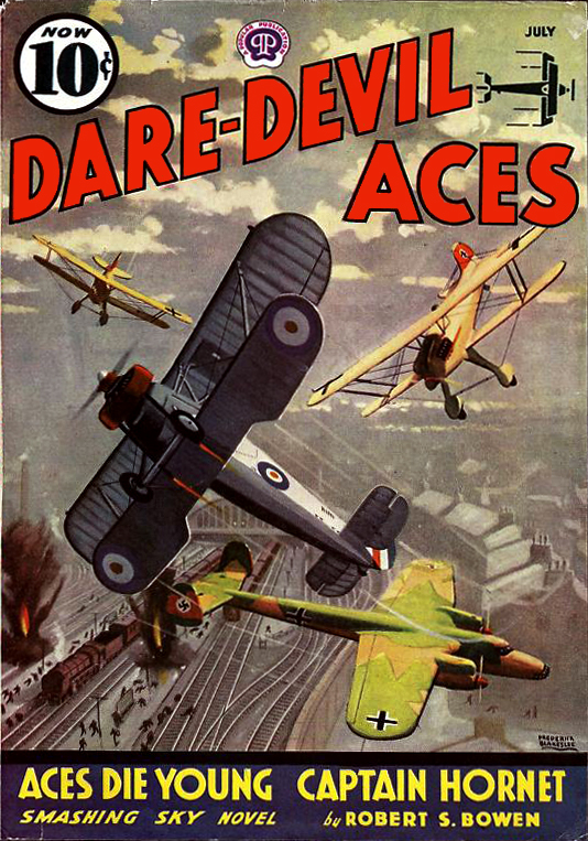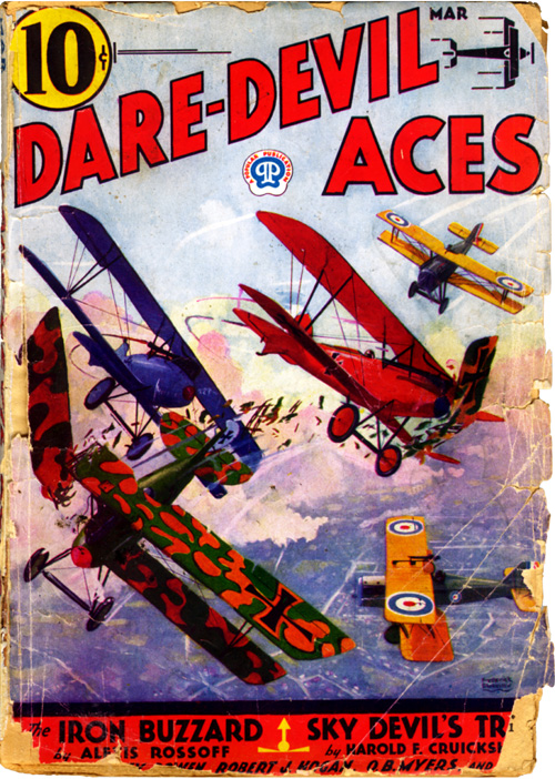 The covers to Dare-Devil Aces magazines were rarely specific to a particular story appearing inside, so when we got into doing reprints we had to decide if we wanted full-color but generic covers to our books, or character-specific covers with a limited palette. We opted to use Blakeslee’s black and white illustrations and give each book a signature color, which has become our trademark. But with a website we can now display some of these sensational covers that ended up on the cutting room floor (albeit in 2mil mylar with buffered backing boards).