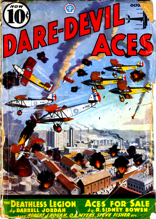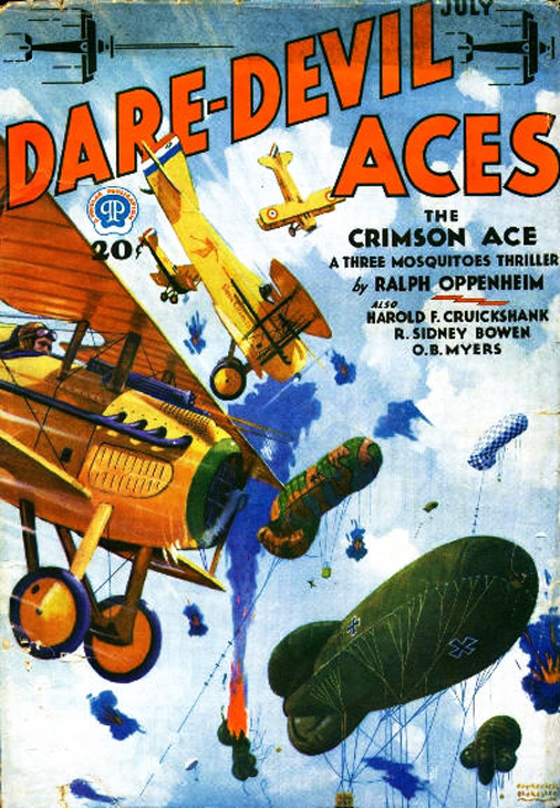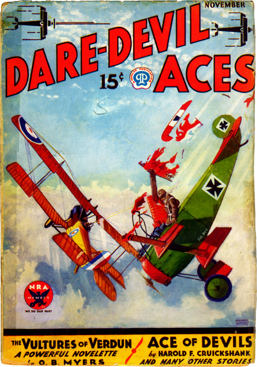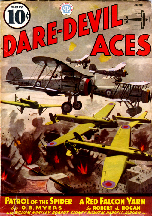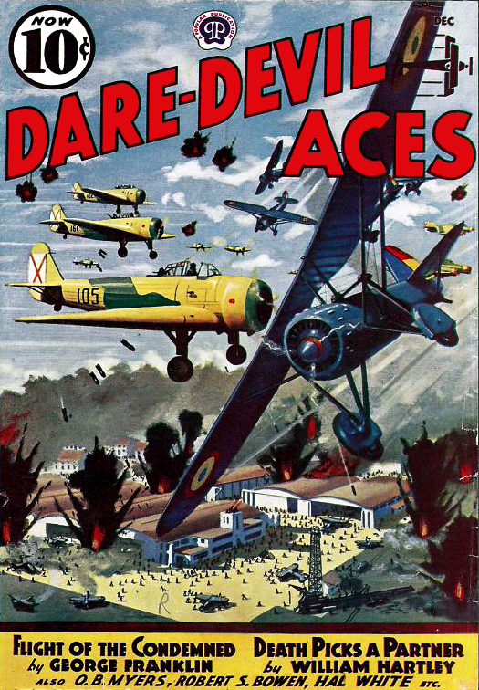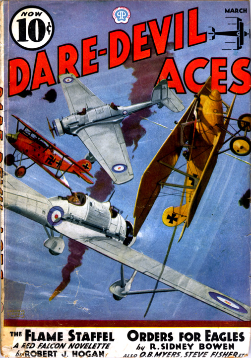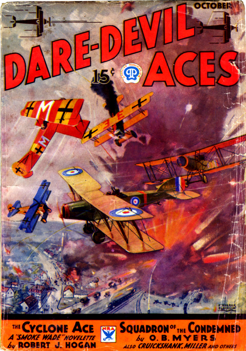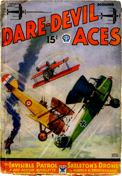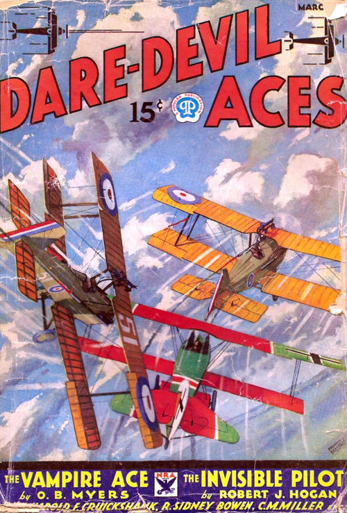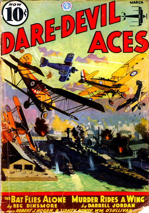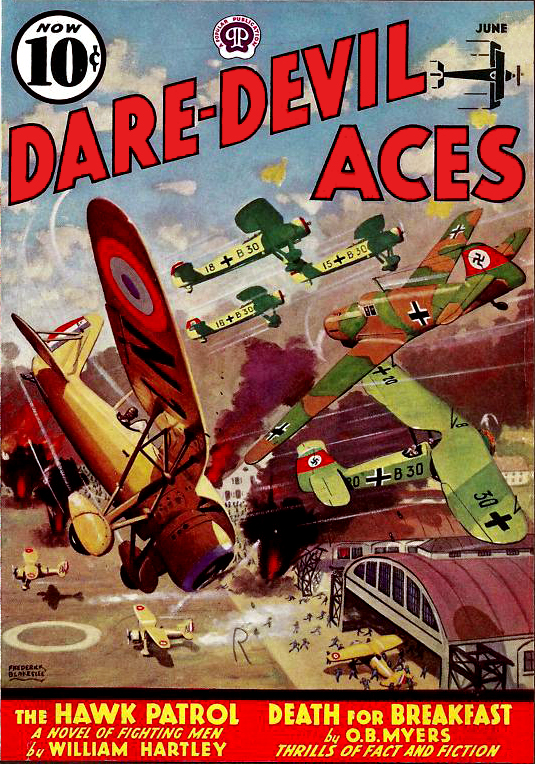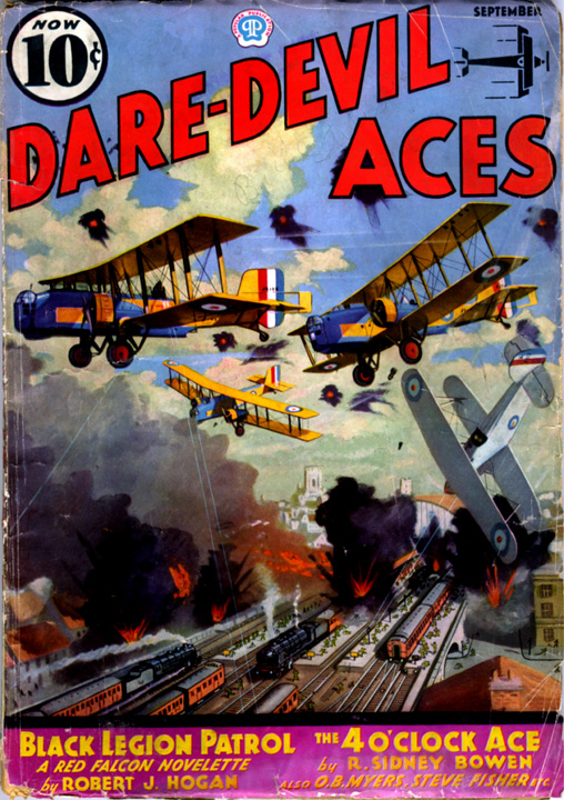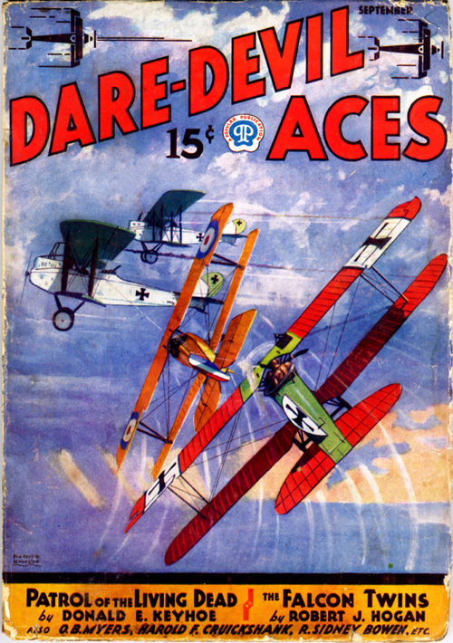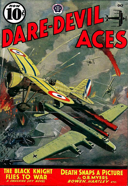 The covers to Dare-Devil Aces magazines were rarely specific to a particular story appearing inside, so when we got into doing reprints we had to decide if we wanted full-color but generic covers to our books, or character-specific covers with a limited palette. We opted to use Blakeslee’s black and white illustrations and give each book a signature color, which has become our trademark. But with a website we can now display some of these sensational covers that ended up on the cutting room floor (albeit in 2mil mylar with buffered backing boards).