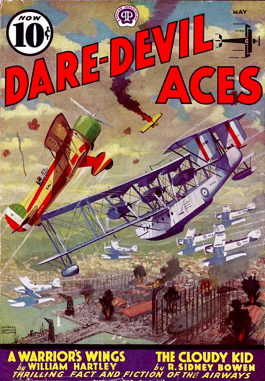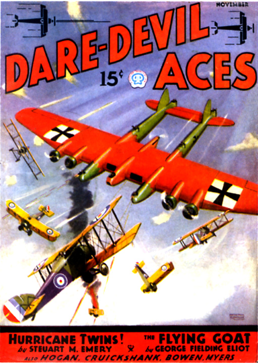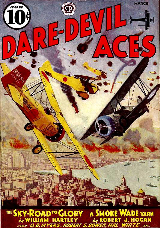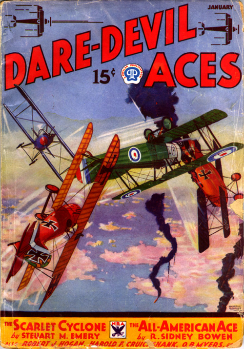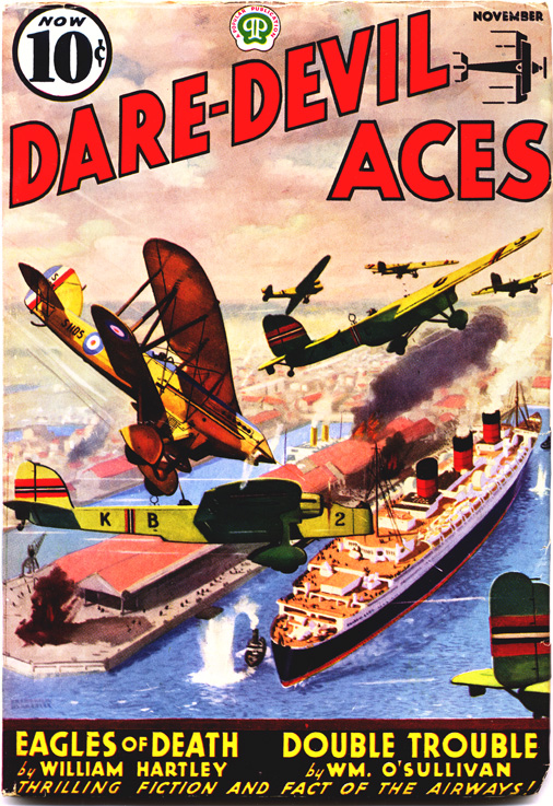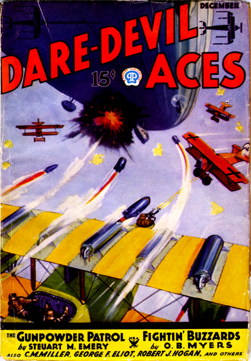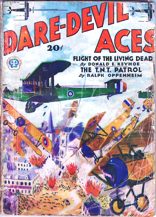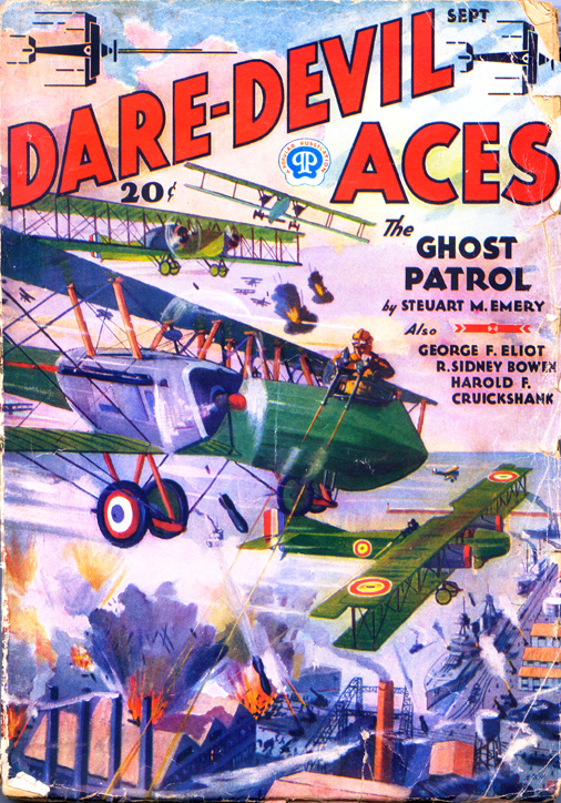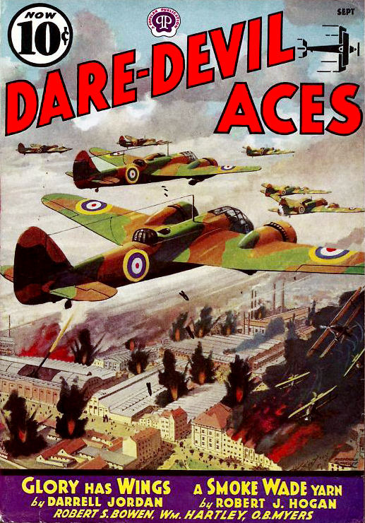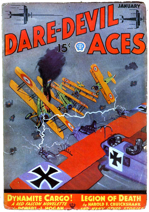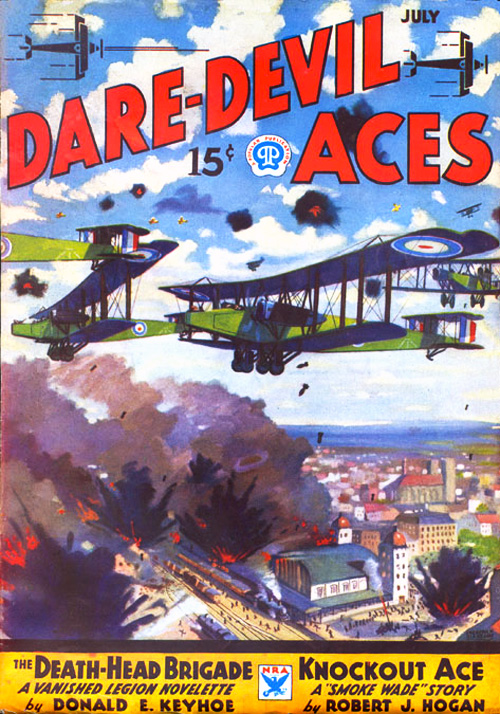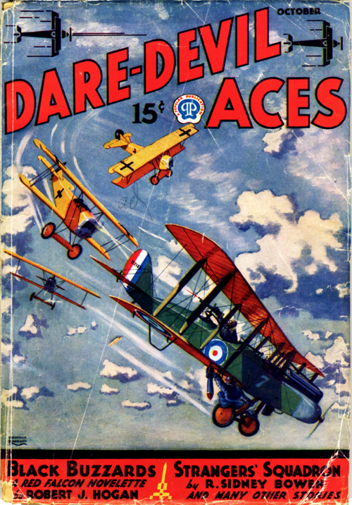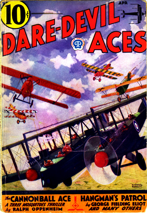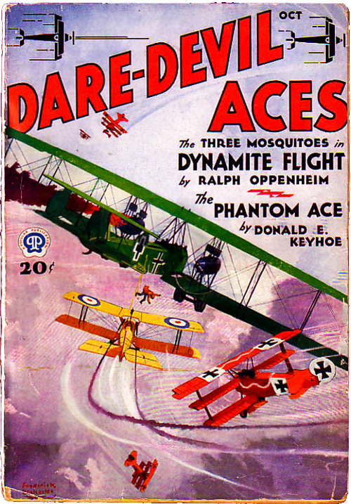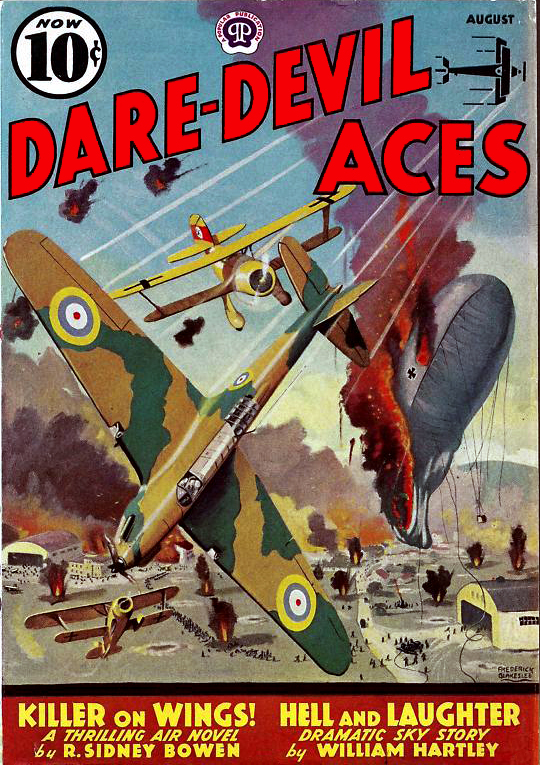The covers to Dare-Devil Aces magazines were rarely specific to a particular story appearing inside, so when we got into doing reprints we had to decide if we wanted full-color but generic covers to our books, or character-specific covers with a limited palette. We opted to use Blakeslee’s black and white illustrations and give each book a signature color, which has become our trademark. But with a website we can now display some of these sensational covers that ended up on the cutting room floor (albeit in 2mil mylar with buffered backing boards).