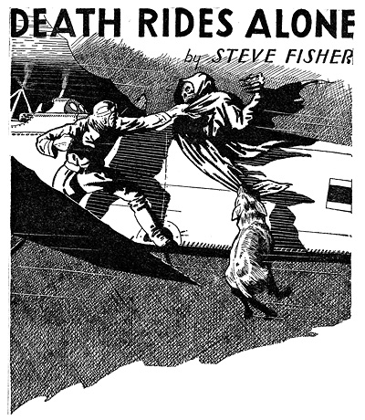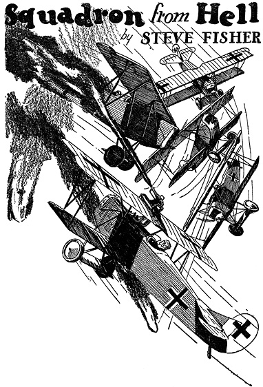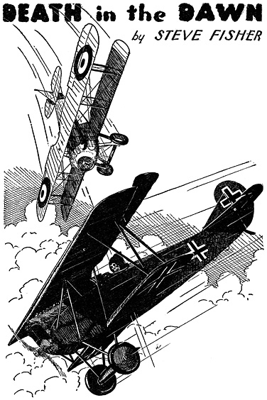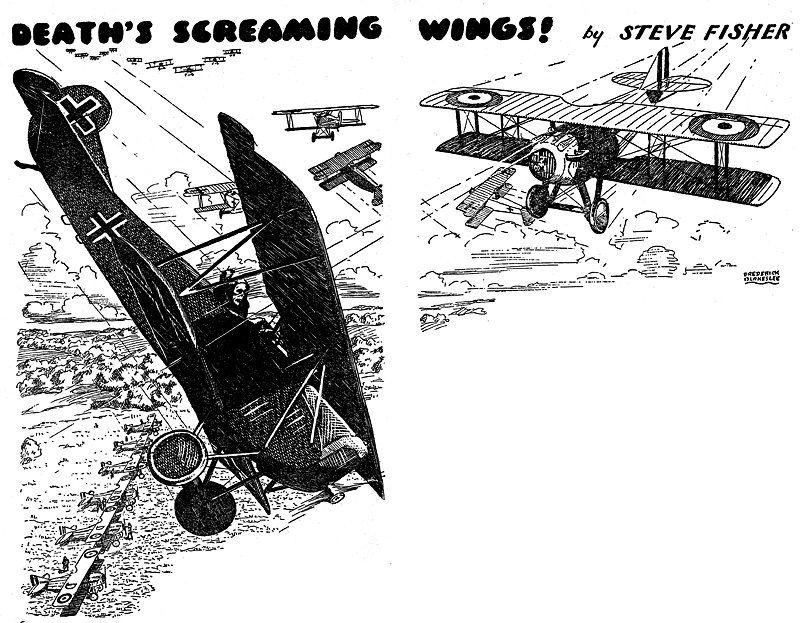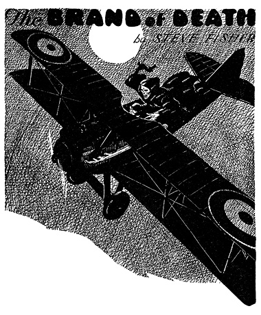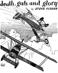 While all of the Age of Aces aviation titles feature the original artwork for each story, it has been modified to better fit our book designs. In general, the original artwork flowed around the opening of the adventure, but in our volumes it’s expanded to fill an entire page or spread to serve as a “cover” to the story. Also, to unify the book we run the story’s title in our own font, stripping out the lettering done by the artist. Here on the web though we can offer a “dvd extra” of sorts — the full, unmodified artwork as it originally appeared in the pulp.