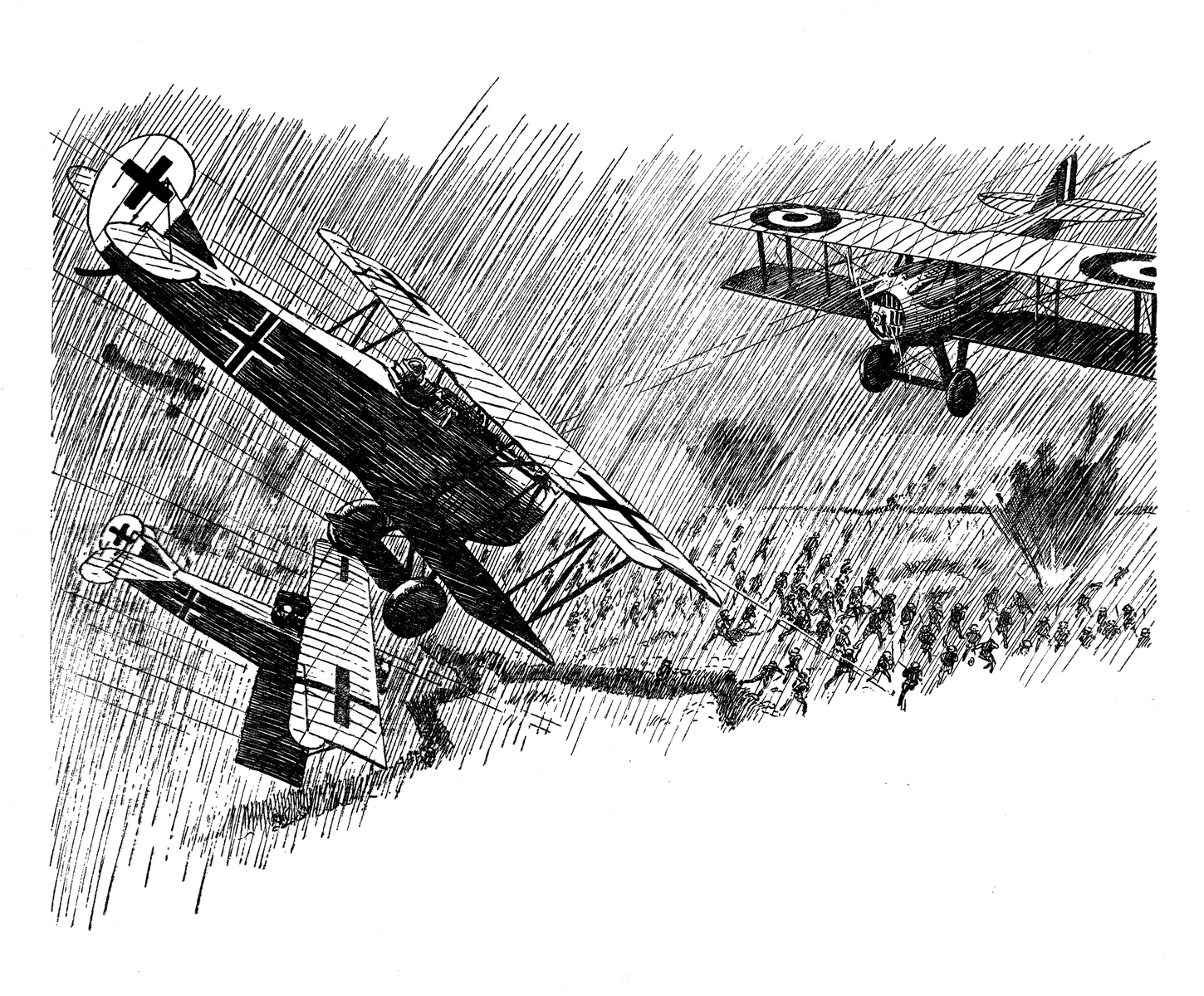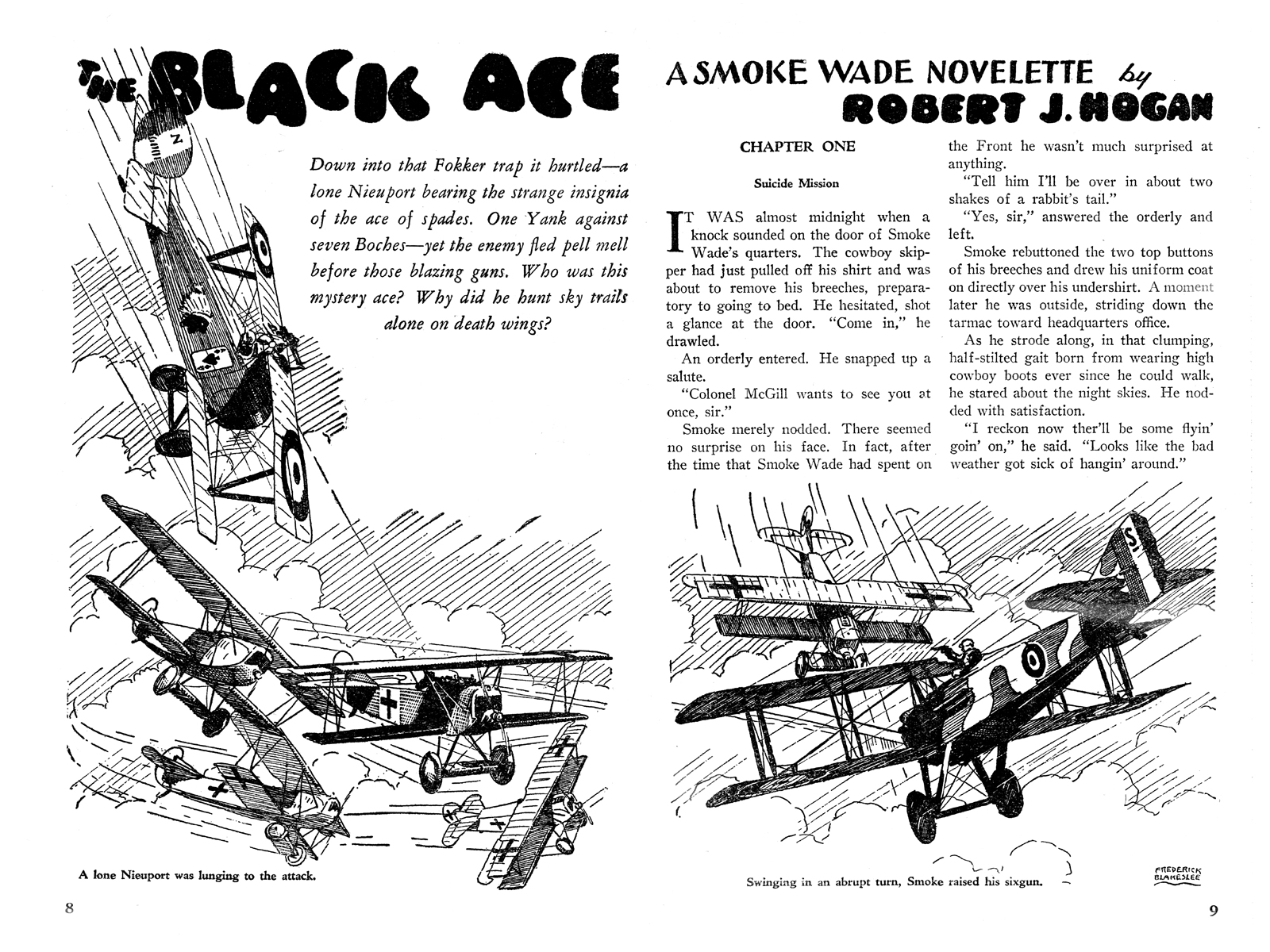 All art by Frederick Blakeslee except Dare-Devil Aces 2/35, “Bull’s-Eye Buzzards,” by Josef Katula.