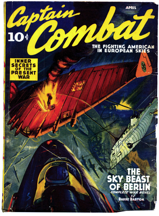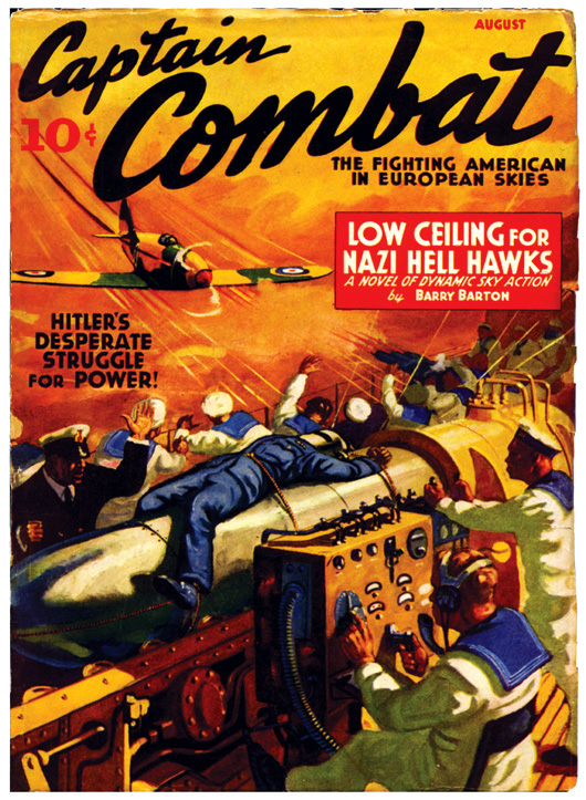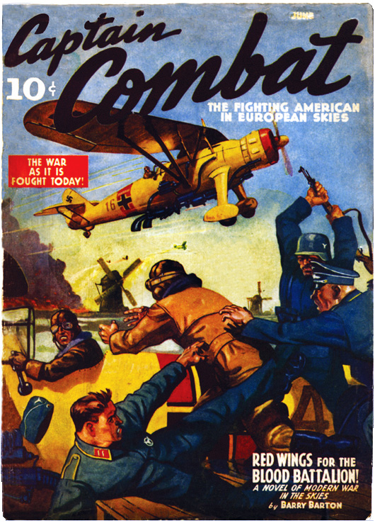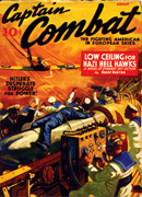 Captain Combat lasted only three issues. The covers for these three issues are more along the lines of his G-8 and his Battle Aces covers than those he did for Dare-Devil Aces, but all three are still pure Blakeslee gold!