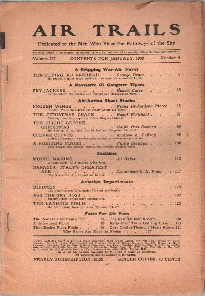 Here are a trio of his stories that ran in the 1930 in the pages of Flying Aces and Sky Birds.