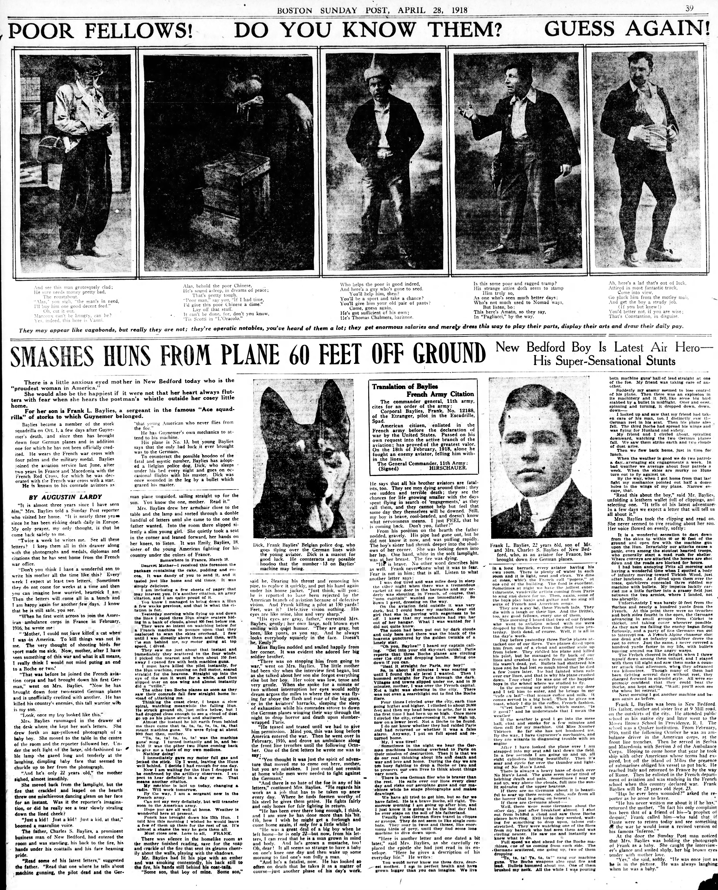 When America officially entered the war, Baylies was offered a commision, but declined, choosing to remain with the French Air Service. He eventually did transfer as a 2nd Lieutenant in May, but remained with The Storks.