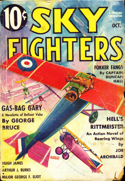 THIS week we have a story by another of our favorite authors—Harold F. Cruickshank! Cruickshank is popular in these parts for the thrilling exploits of The Sky Devil from the pages of Dare-Devil Aces, as well as those of The Sky Wolf in Battle Aces and The Red Eagle in Battle Birds. He wrote innumerable stories of war both on the ground and in the air.