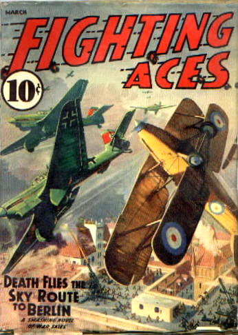 flew through the Hell Skies of 29 adventures in the pages of Dare-Devil Aces from 1932-1935. Cruickshank returned to the savior of the Western Front in six subsequent stories several years later. The first two were in the pages of Sky Devils (June 1939) and Fighting Aces (March 1940). The other four ran in Sky Fighters (1943-1946); and like Oppenheim had done with his Three Mosquitoes, so Cruickshank did with Sky Devil—he moved him to the Second World War where Bill Dawe changes his name to get into the air service and flys along side his son!