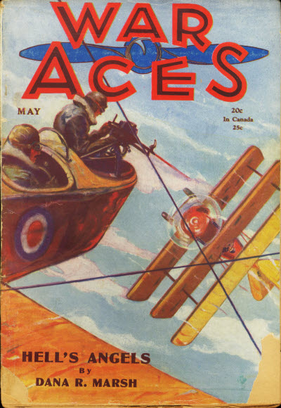 dozen stories with Humpy & Tex over the course of ten years from 1930 through 1939, mostly in the pages of War Aces and War Birds. The stories are centered around the naval air base at Ile Tudy, France. It had been built after the goose and goat spoor had been cleared away. And even then they used a sardine factory for headquarters, and if there was anything rotten in Finisterre, it was the odor that assailed the noses of pilots who had been out flying over clean salt water and then came back to this seaplane station. “Humpy” Campbell, a short thickset boatswain’s mate, first class who was prone to be spitting great sopping globs of tabacco juice, was a veteran seaplane pilot who would soon rate two hashmarks—his observer, Tex Malone, boatswain’s mate, second class, was a D.O.W. man fresh from the Texas Panhandle. Everybody marveled at the fact that the latter had made one of the navy’s most difficult ratings almost overnight—but the answer lay in his ability with the omnipresent rope he constantly carried.