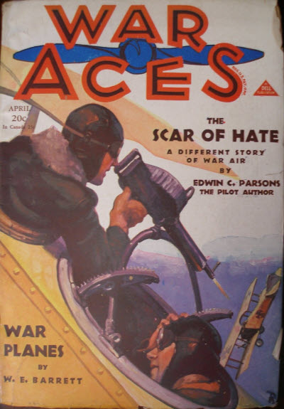 From the April 1931 War Aces, it’s William E. Barrett’s “Breed of Angels!”