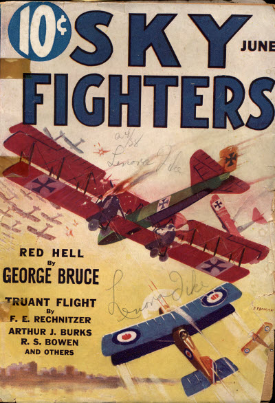 Stories Include: Dead Man’s Drone (Jun 37), Skeletons From the Sky (Dec 37), Scourge of Oblivion (Apr 38), Pirate Squadron (Jun 38), The Gray Face Ace (Oct 28), Strafe of the Skull (Dec 38), Raid of the Wraith (Mar 39), Flight of the Phantoms (Aug 39), and When England Vanished (Nov 39).