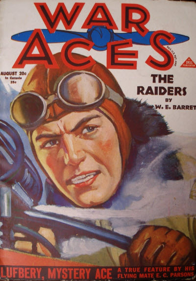 Editor’s Note: Every month the cover of BATTLE ACES depicts a scene from a real combat actually fought in the War and a real event in the life of a great ace. The series is being painted exclusively for this magazine by Frederick M. Blakeslee, well-known artist and authority on aircraft and was started especially for all of you readers who wrote us requesting photographs of war planes. In this way you not only get pictures of the ships—authentic to the last detail—but you see them in color. Also you can follow famous airmen on many of their most amazing adventures and feel the same thrills of battle they felt. Be sure to save these covers if you want your collection of this fine series to be complete.