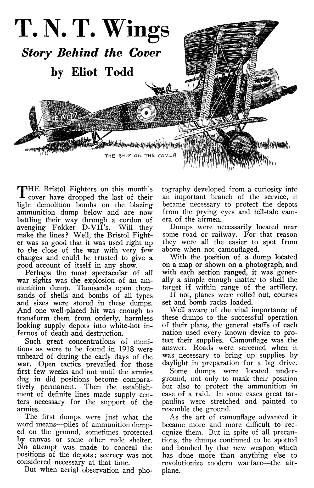 magazine has been exceedingly fortunate in securing R. Sidney Bowen to conduct a technical department each month. It is Mr. Bowen’s idea to tell us the underlying principles and facts concerning expressions and ideas of air-war terminology. Each month he will enlarge upon some particular statement in the stories of this magazine. Mr. Bowen is qualified for this work, not only because he was a war pilot of the Royal Air Force, but also because he has been the editor of one of the foremost technical journals of aviation.