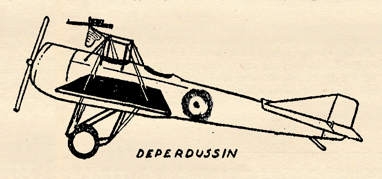 Being speedier than the Deperdussin, the German D.F.W.’s pilot flipped his ailerons and barged out of the Frenchman’s range. He took home a riddled plane and a report which drove the German designers of front gun fire ahead at fever pitch. Nothing stood still during the war and it was not long before other ways of lead spraying appeared. Aviation in war was definitely established; a thing of power and effectiveness with which future wars will not only be fought, but be won.