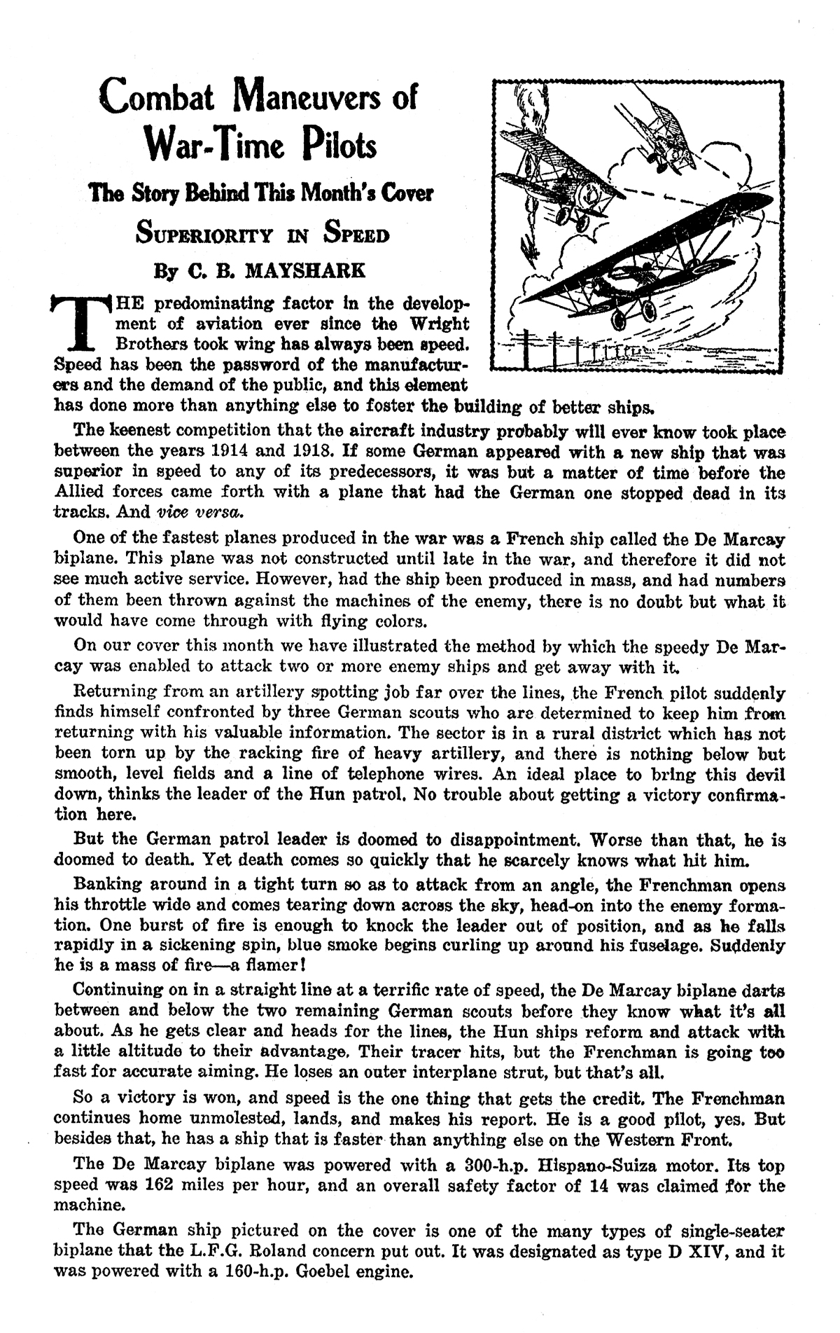 development of aviation ever since the Wright Brothers took wing has always been speed. Speed has been the password of the manufacturers and the demand of the public, and this element has done more than anything else to foster the building of better ships.