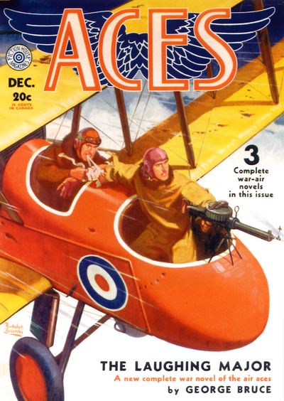 Billy King hated the French. A year in the Foreign Legion infantry, under hardboiled officers and non-coms, was mostly responsible. That was before the United States entered the war and Billy became eligible for transfer—a transfer that shot him right back into another French outfit again! It was in a cafe wallowing in his misfortune that Billy King wound up getting mixed up with a girl, an ex-king of Monravia. and a hairbrained scheme to snatch the mustaches of Captain von Grunow of the Imperial German Air Service! From the pages of the December 1931 Aces, it’s H.P.S. Greene’s “Kings Up!”