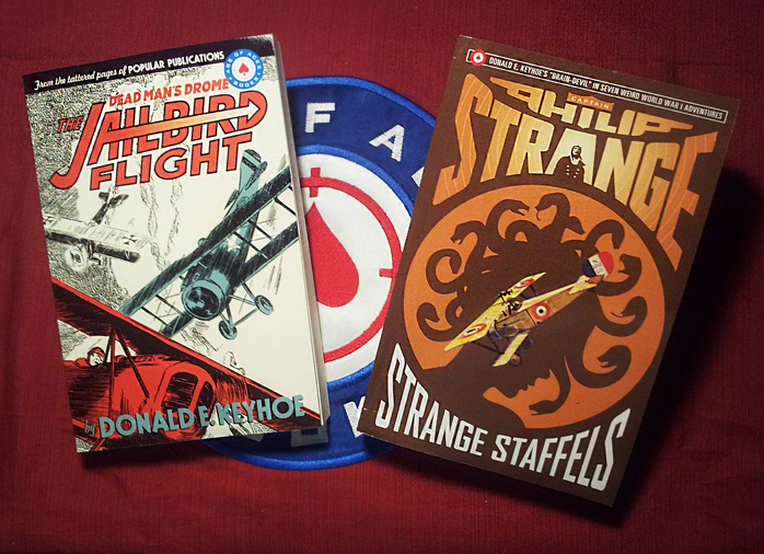 This year at PulpFest we’ll be premiering our latest two volumes. Both are from the pen of Donald E. Keyhoe, noted aviator, author, and ufologist. In 1931, Keyhoe created a number of long-running characters for as many aviation pulps. There was Philip Strange in Flying Aces; The Devil Dog Squadron in Sky Birds; and The Jailbird Flight for Popular Publication’s Battle Aces.