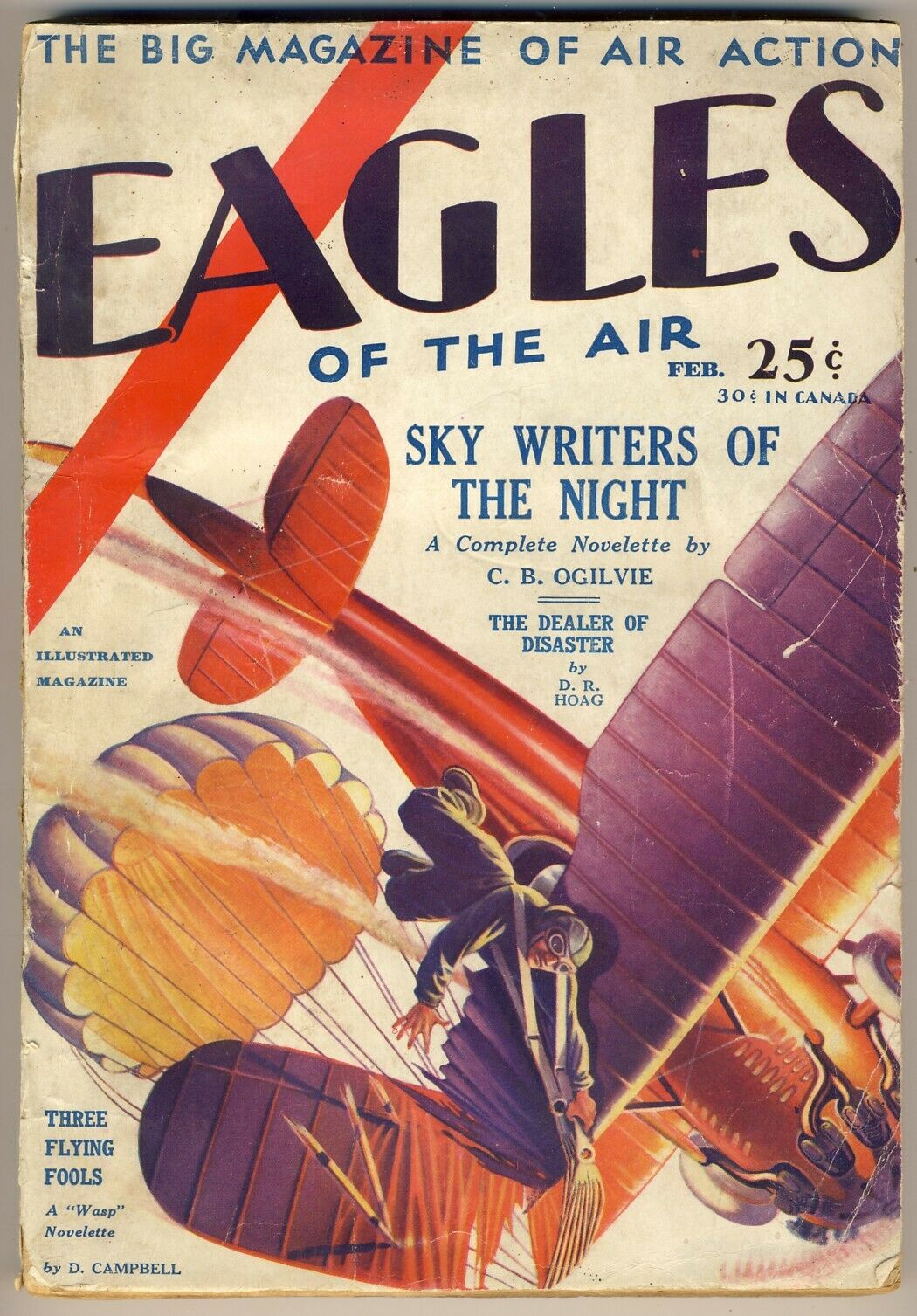 air intrigue by E.W. Chess. Elliot W. Chess was a prominent author in the pulps—his name frequently appearing on the covers to entice readers. His pulp career spanned from 1929 to 1940, but a majority of his output was in the early thirties. Equally adept at both westerns having grown up in El Paso, Texas and air war stories having served in the Royal Flying Corp in the First World War and the 7th Squadron of the Polish Air Force afterward when Russians tried to invade the country. Here, Chess tells a tale of a “Doomed Squadron” whose pilots are mysteriously disappearing one by one. . . .