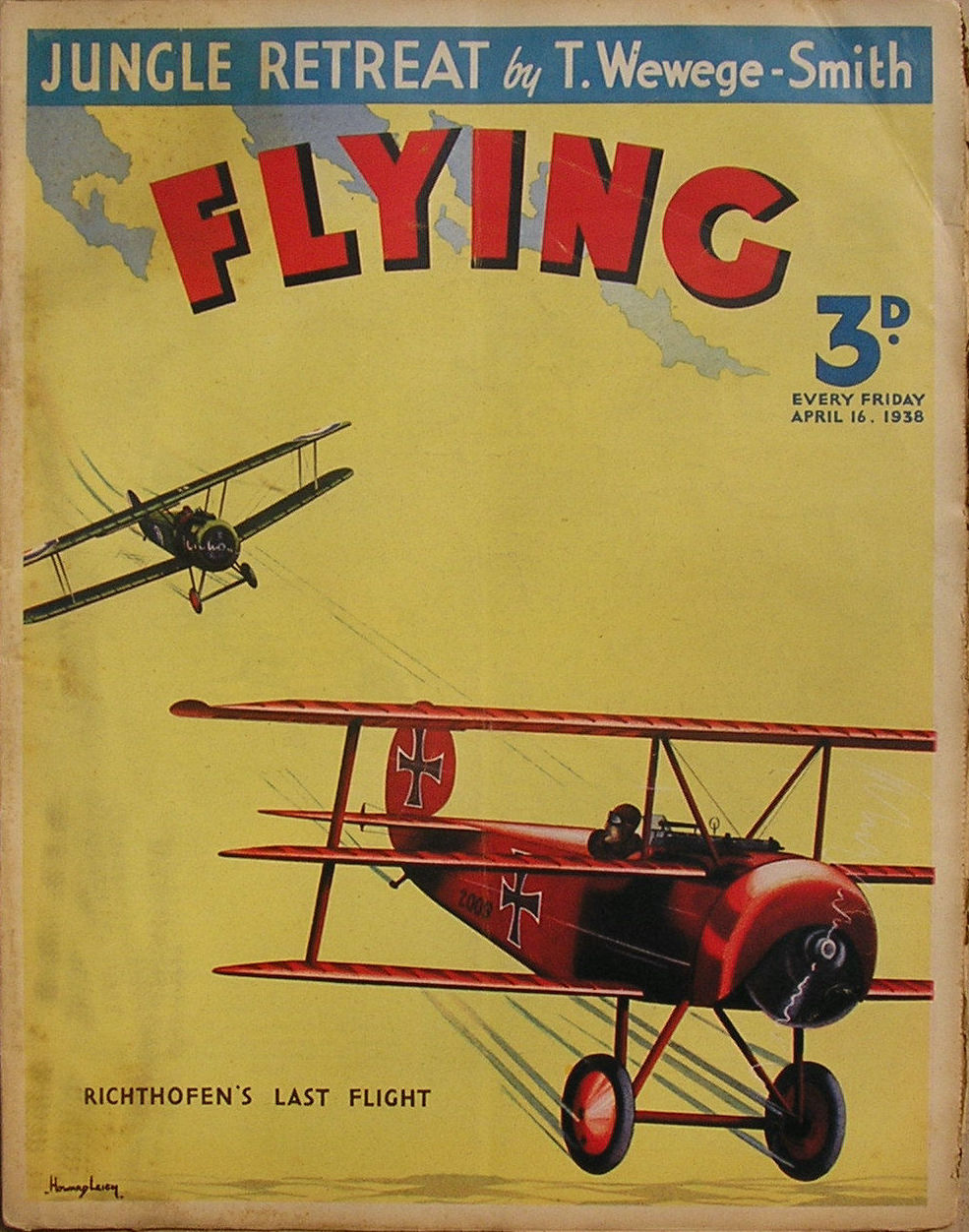 WHEN Flying, the new weekly paper of all things aviation, started up in England in 1938, amongst the articles and stories and photo features was an illustrative feature called “Heroes of the Air.” It was a full page illustration by S. Drigin of the events surrounding how the pictured Ace got their Victoria Cross along with a brief explanatory note.