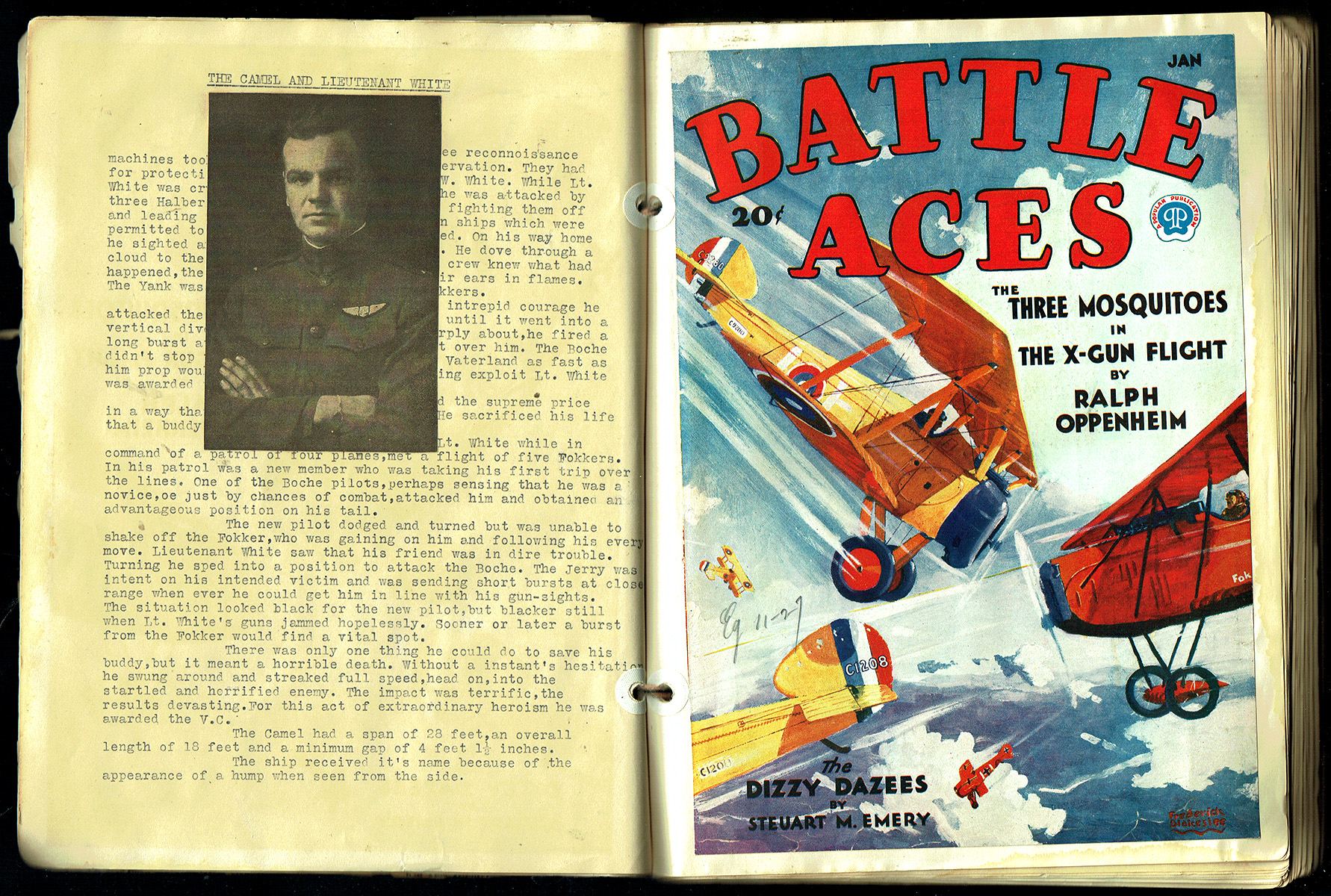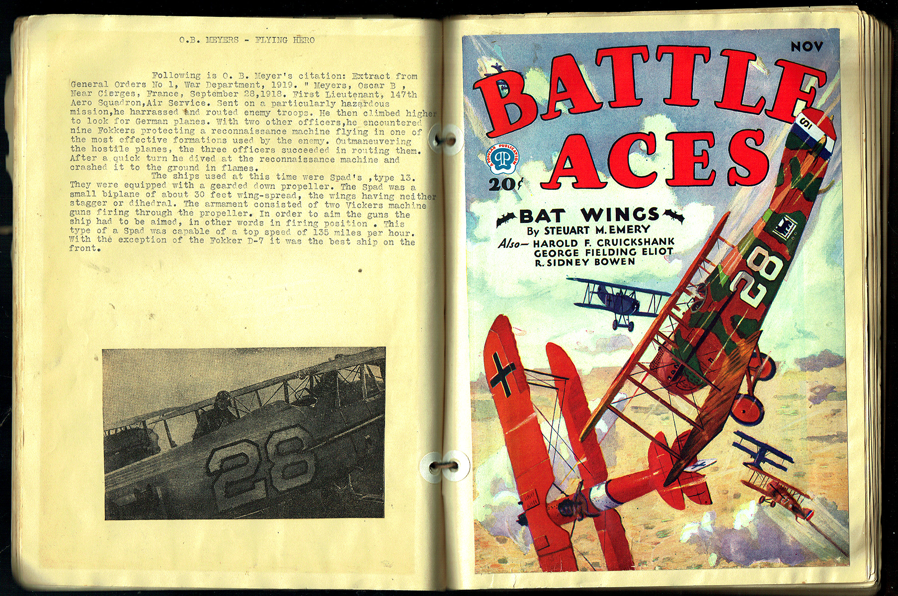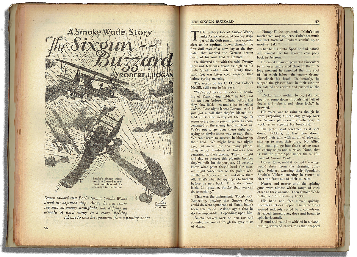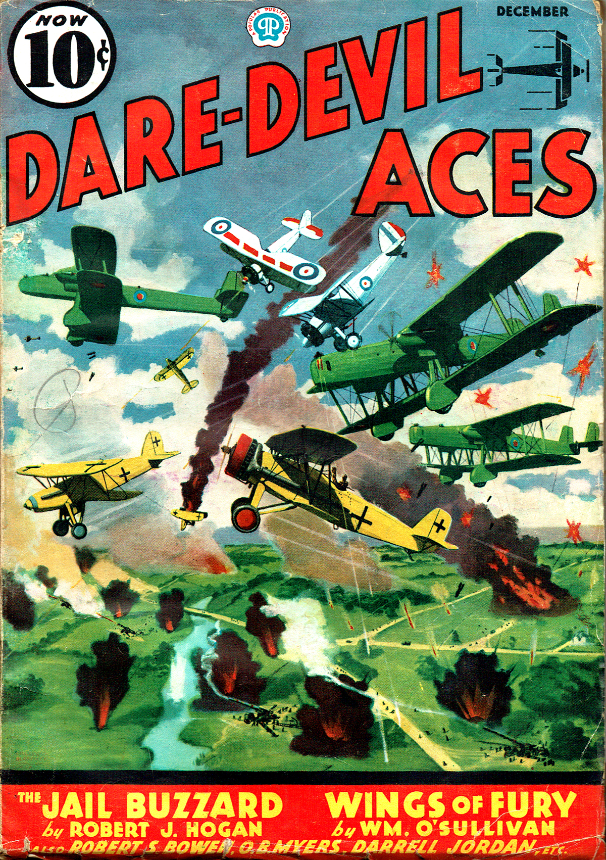 Frederick Blakeslee painted all the covers for the entire run of Dare-Devil Aces. And each of those covers had a story behind it. At this point in the magazine’s run, Mr. Blakeslee had started doing his “Planes by the Numbers” covers where he has so many planes on the cover, he had to explain which plane is what with a legend on the story behind the cover page. For the August issue we get a bit of a throwback where Mr. Blakeslee turns his attention to the Fairey Fantome!