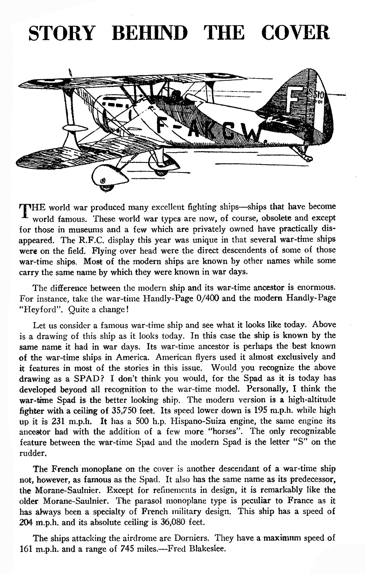 As an added bonus, we present Norman Witcomb’s breif write-up on the Fairey Fantome that Mr. Blakeslee references from the July 1937 issue of Dare-Devil Aces.