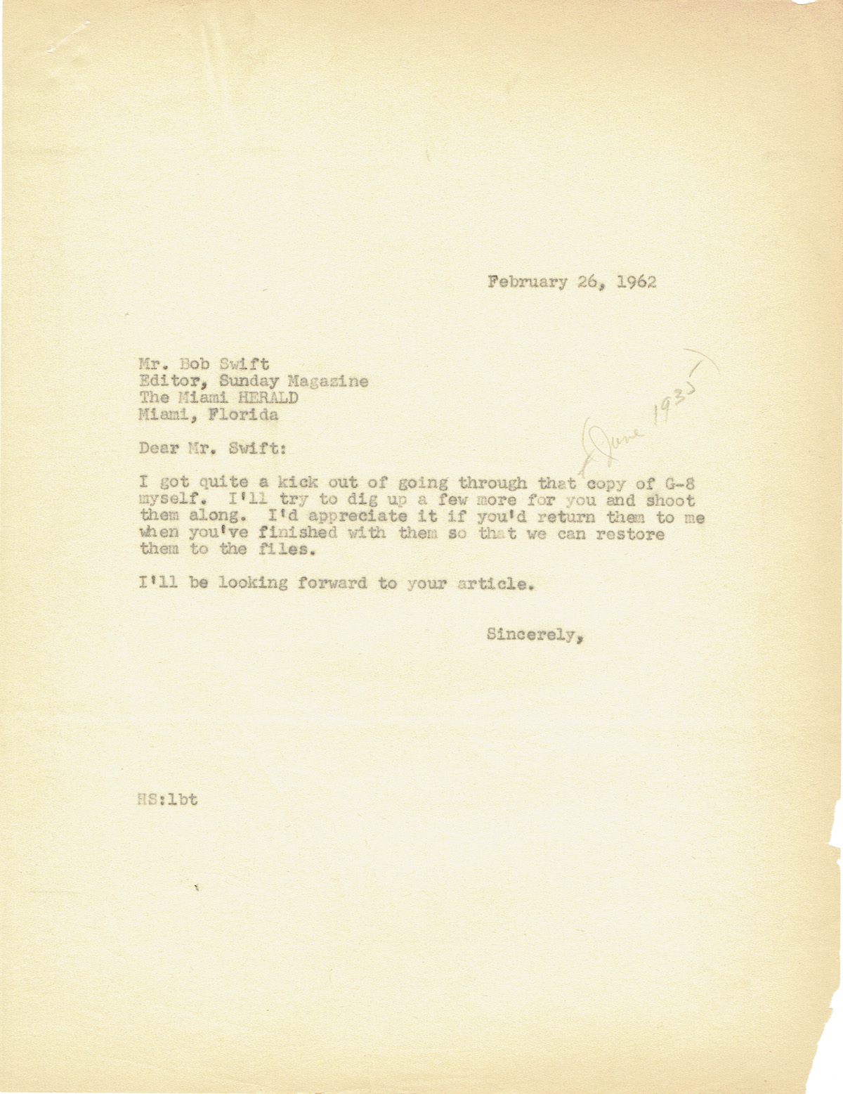 - Download “G-8: Spy King of the Pulps” (8 July 1962, The Miami Herald Sunday Magazine)