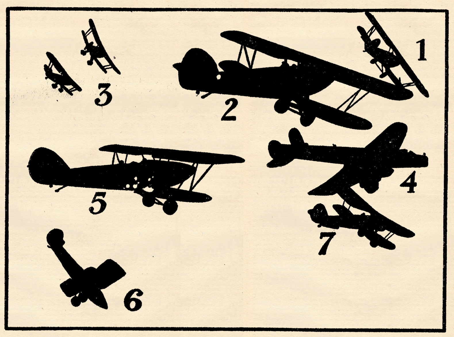 No. 4 is a Fairey “Hendon” night bomber, and don’t ask me what it’s doing out in the daytime. Maybe it hasn’t been home yet. You’ll notice that it has left the rest of the flight and is off by itself. Ginsburg is probably at the wheel, and you know that guy!