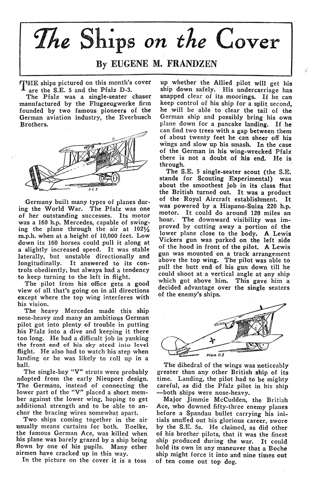 AMIDST all the great pulp thrills and features in Sky Fighters, they ran a true story feature collected by Ace Williams wherein famous War Aces would tell actual true accounts of thrilling moments in their fighting lives! This time we have British Flyer Major Edward Mannock’s most thrilling sky fight!