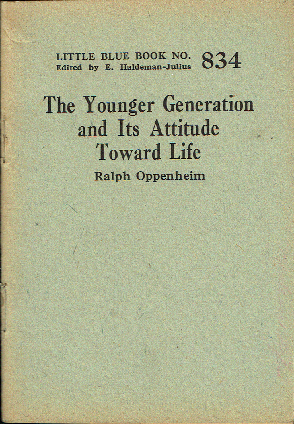 Oppenheim seemed to be a role with the Haldeman-Julius Quarterly readers (or at least their editors), for the third issue (April 1927) once again featured an article by Oppenheim. This time it was his treatise on his generation: “The Younger Generation Speaks: An American Youth Tells About Its Attitude Toward Life” (a reprinting of The Younger Generation and Its Attitude Toward Life (lbb-834, 1927)). In addition to numerous spot illustrations and photos, the article also featured an introduction to the author, once again using the same photo of Oppenheim as before.