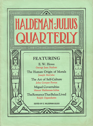 The second issue of the Haldeman-Julius Quarterly (January 1927) featured Oppenheim’s “The Romance That Balzac Lived: How The Great Interpreter of the Human Comedy Lived and Loved” (a reprinting of The Romance That Balzac Lived: Honore de Balzac and the Women He Loved (lbb-1213, 1927)). The article was nicely illustrated with a daguerreotype of Balzac and spot illustrations by Fred C. Rodewald, but no introductory page about Oppenheim.