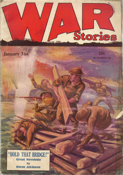 by the prolific O.B. Myers! Myers was a pilot himself, flying with the 147th Aero Squadron and carrying two credited victories and awarded the Distinguished Service Cross. Following up his first story last week, we have his second published story. “Pip” Preston brings down the great von Stangel. But von Stangel turns out to be an undercover agent…. From the pages of the January 31st, 1929 issue of War Stories it’s O.B. Myer’s “The Buzzard’s Guest!”