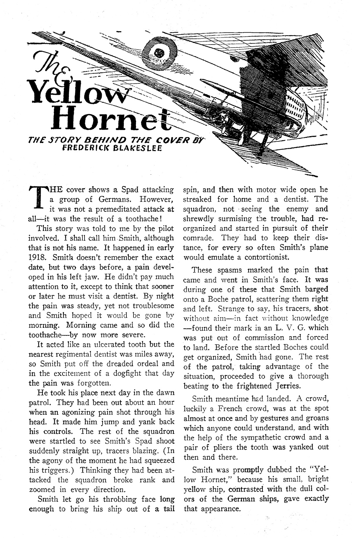 “The Yellow Hornet: The Story Behind The Cover” by Frederick M. Blakeslee (July 1933)