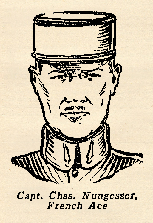 The defense ships, presumably brought into action from one of the near-by air bases, are Curtiss P-6-E Hawks, a standard pursuit fighter of the Air Service. This ship is a good old stand-by—rough, tough and nasty in a scrap. It is armed with the new high-speed Browning gun and can throw a thousand rounds a minute from each muzzle. It has a top speed of 198, with the 675 Curtiss “Conqueror†Prestone-cooled engine.