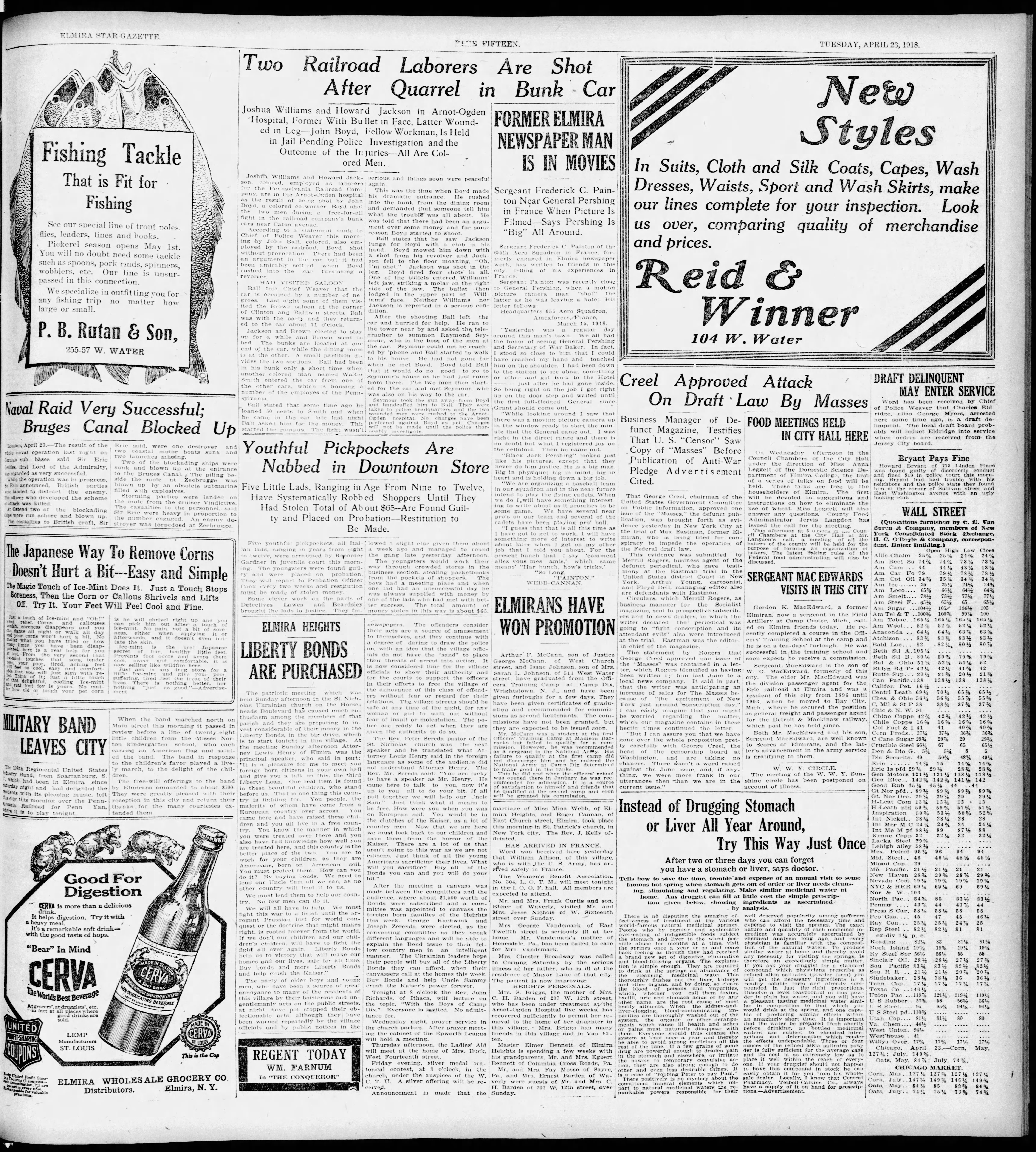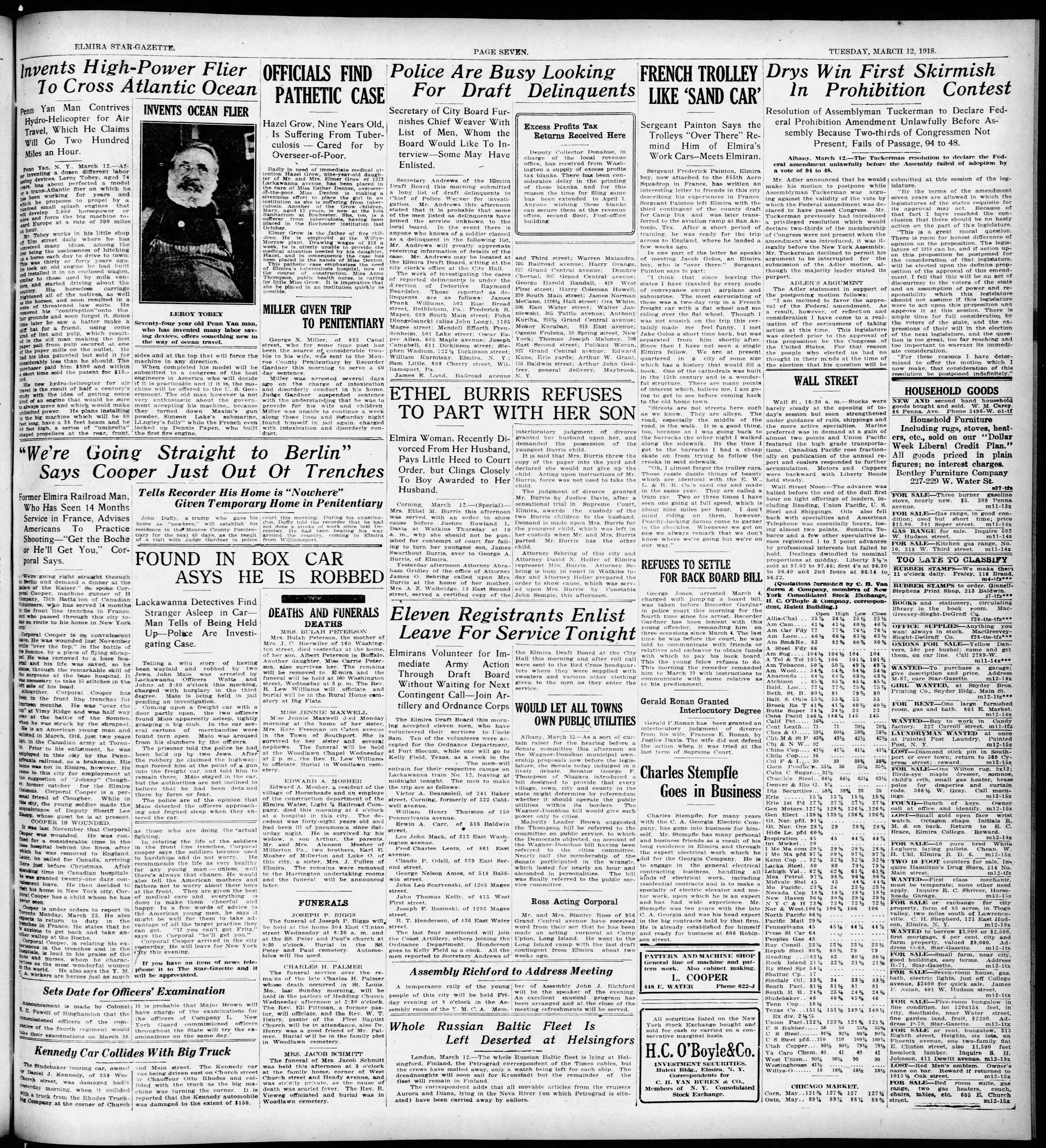 - Download clipping (18 February 1919, Elmira Star-Gazette)