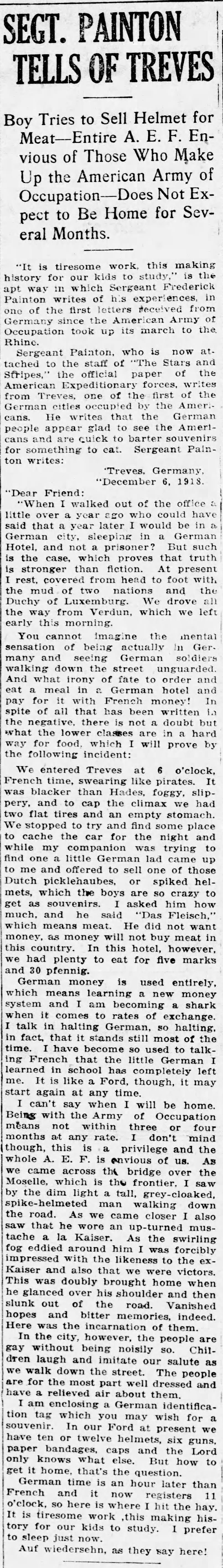 SERGEANT FRED PAINTON WRITES OF THE AMERICAN OCCUPATION OF COBLENTZ ON THE RHINE