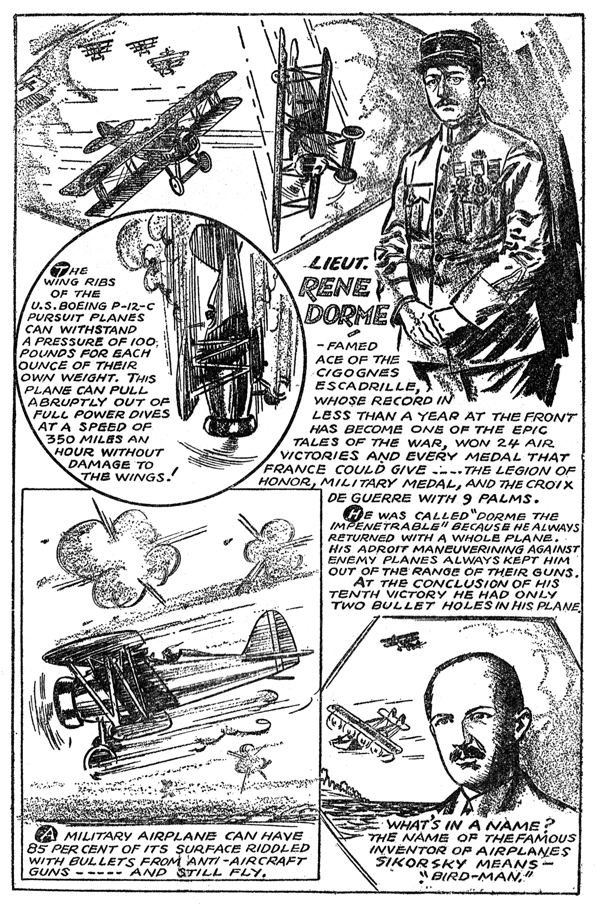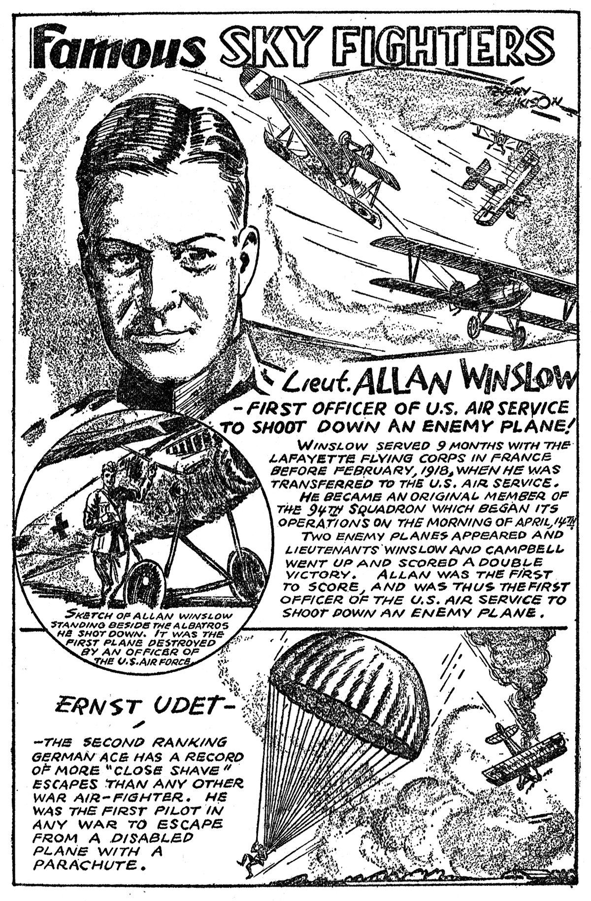 The November 1933 installment, from the pages of Sky Fighters, features Lt. Allan Winslow, Ernst Udet and Lt. Rene Dorme!