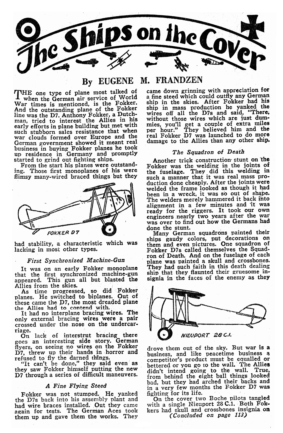 He demonstrated this fact by grabbing the only .45 automatic in the crowd and sprinting across the flying field, hopping into a Nieuport 28 and getting off the field fifty yards ahead of a Yank who was testing a captured Pfalz D13 which had a trick Fokker tail in its rear section. Neither of the ships had ammo.