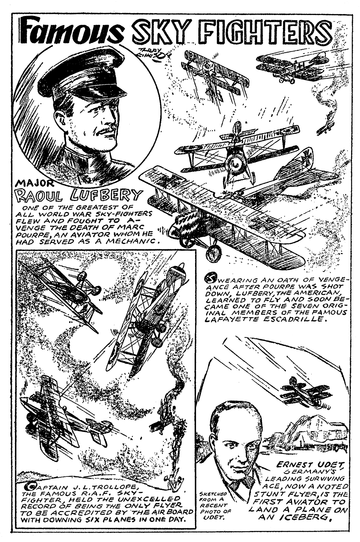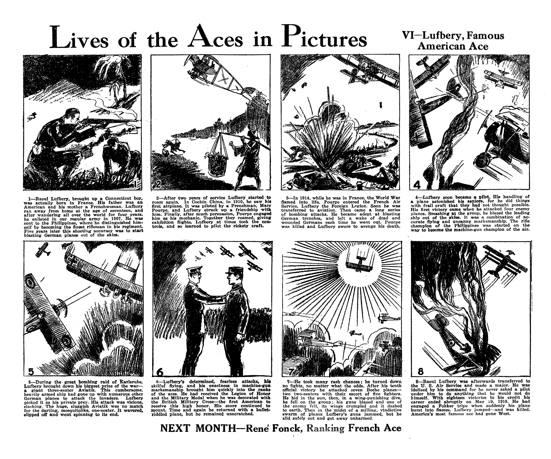 THIS week we present “Niebling’s Phenomenal Feat”—The story behind Paul Bissell’s April 1933 cover for Flying Aces! Bissell is mainly known for doing the covers of Flying Aces from 1931 through 1934 when C.B. Mayshark took over duties. For the May 1932 cover Bissell presents the moment in the battle of Mauser raid where Raoul Lufbery became an ace!