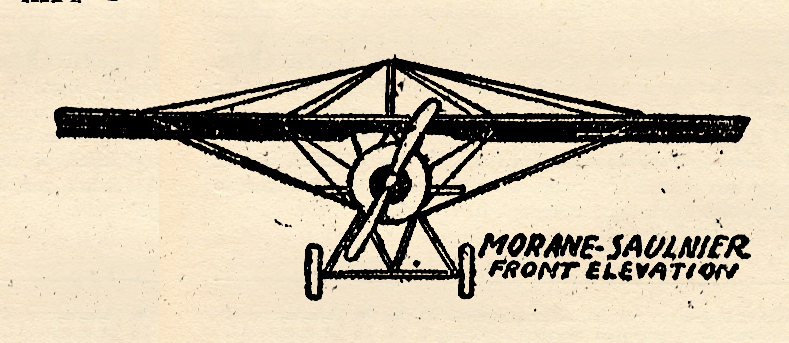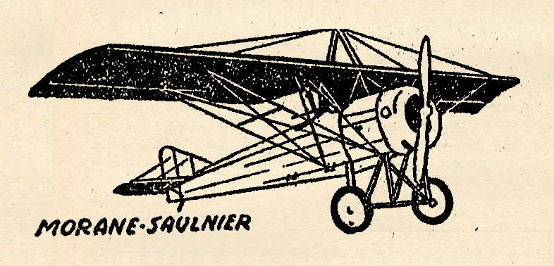 THE Morane-Saulnier Parasol type monoplane was used back in 1914 by the French Army for artillery spotting. As the war continued the Parasols were improved each year but they were still doing their work mainly on reconnaissance missions. These sleek little ships were too speedy targets for most opponents, very unlike the majority of two seaters. They could climb well but they had tricks to play on their own pilot if he didn’t know their temperamental shortcomings.