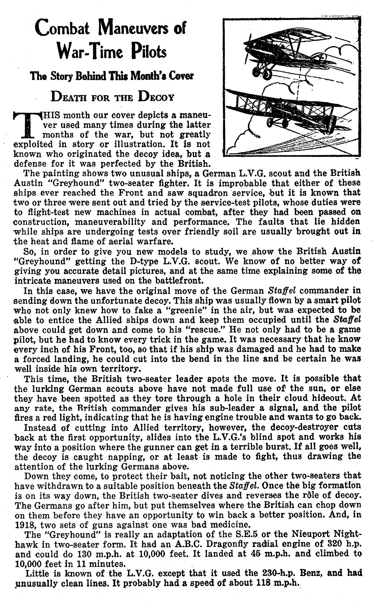 magazine has been exceedingly fortunate in securing Lt. Edward McCrae to conduct a technical department each month. It is Lt. Mcrae’s idea to tell us the underlying principles and facts concerning expressions and ideas of air-war terminology. Each month he will enlarge upon some particular statement in the stories of this magazine. Lt. MaCrae is qualified for this work, not only because he was a war pilot, but also because he is the editor of this fine magazine.