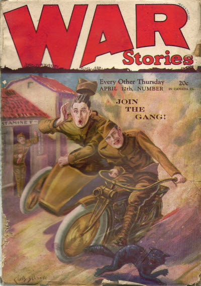 Seven Spads had fallen beneath the twin Spandau guns of the Invisible Ace— so called because no one had really seen this German flyer. Only a flash of wings in the sunlight, a black-cross insignia, a streaking gray shape—that was all they had seen of him. So swift would be the execution—like the trick of a master magician where the “hand is quicker than the eye”—that the other pilots of the flight could never spring into action until it was too late. They would hear the burst of machine-gun fire, and when they turned they would see the victim hurtling below them. But the Invisible Ace would already be up in the sun again, safe from prying eyes. So the Three Mosquitoes are tasked with bringing “The Invisible Ace” to light and ending his reign of terror! From the May 10th, 1928 issue of War Stories, it’s Ralph Oppenheim’s “The Invisible Ace!”