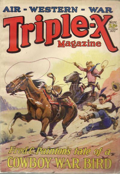 From the pages of the November 1928 issue of Triple X Magazine—so called because it featured air, western and war stories each month—it’s Frederick C. Painton’s “Sky Herdin’ Heinie!”