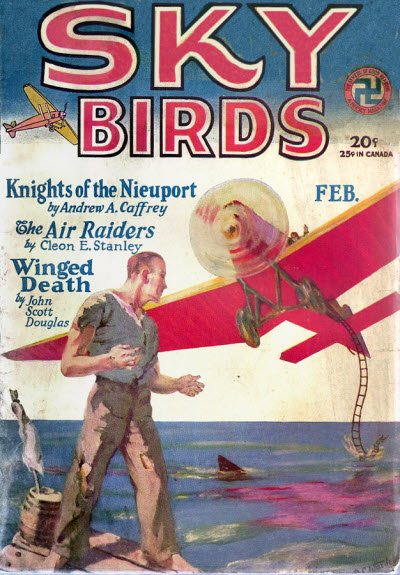 THIS week we have another story from one of the new flight of authors on the site this year—Andrew A. Caffrey. Caffrey, who was in the American Air Service in France during The Great War and worked for the air mail service upon his return, was a prolific author of aviation and adventure stories for both the pulps and slicks from the 1920’s through 1950. For the second issue of Sky Birds, Caffrey tells the story of Lieutenant Mike Harris—a.k.a. “Coupe Mike” due to his proclivity to overuse the coupe button during his training—fresh up from Issoudon after extensive training.