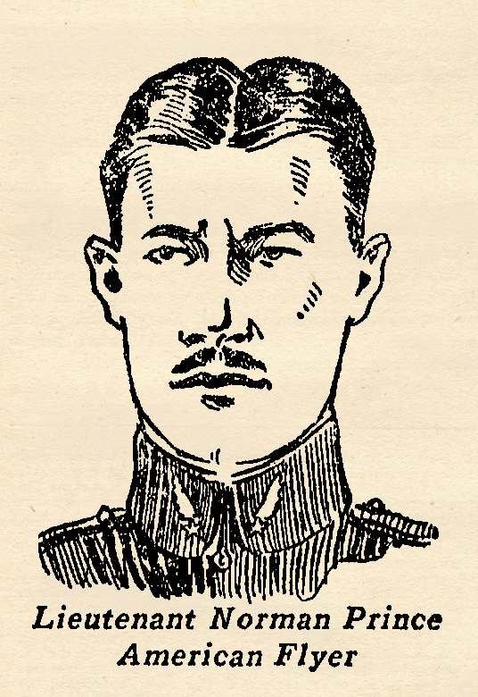 August 31, 1887, scion of one of the blue-blooded families In old Boston, was Norman Pslnce, the founder of the famous LaFayette Escadrille. Educated at Groton and Harvard for a career in business with his wealthy family, he hazarded his promising future and used his wealth and family prestige in overcoming obstacle’s to form a squadron of American aviators for battle at the front. With him in the beginning were Thaw, Chapman, Rockwell, McConnell, Hall and Cowdin. These Americans with Prince made up the roster of the original squadron sent up to the front at Luxeuil in May, 1910.